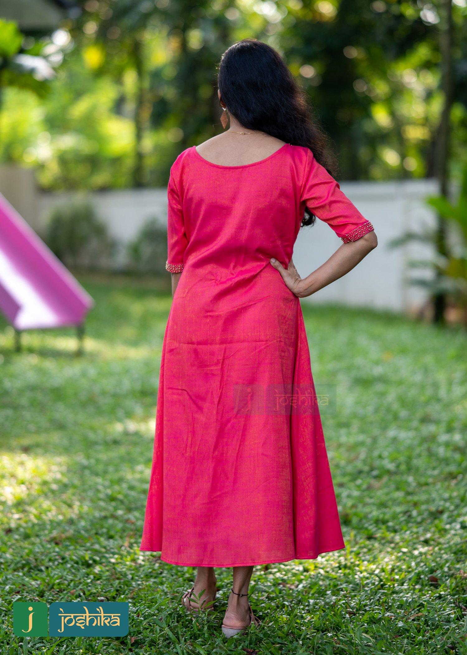 Aline cotton kurta with golden beads work, neck and sleeves are golden beads work, boat neck, elbow sleeves.