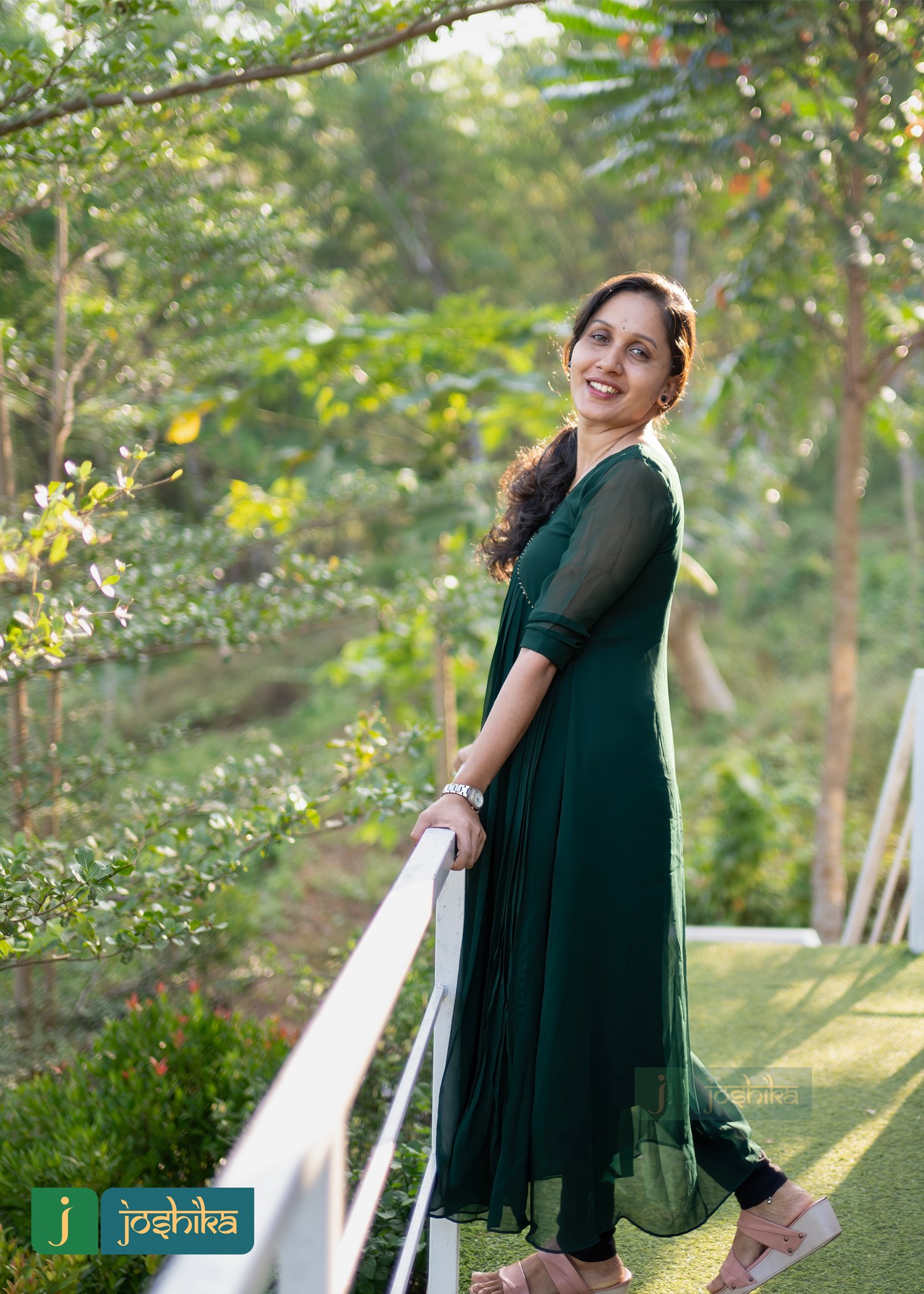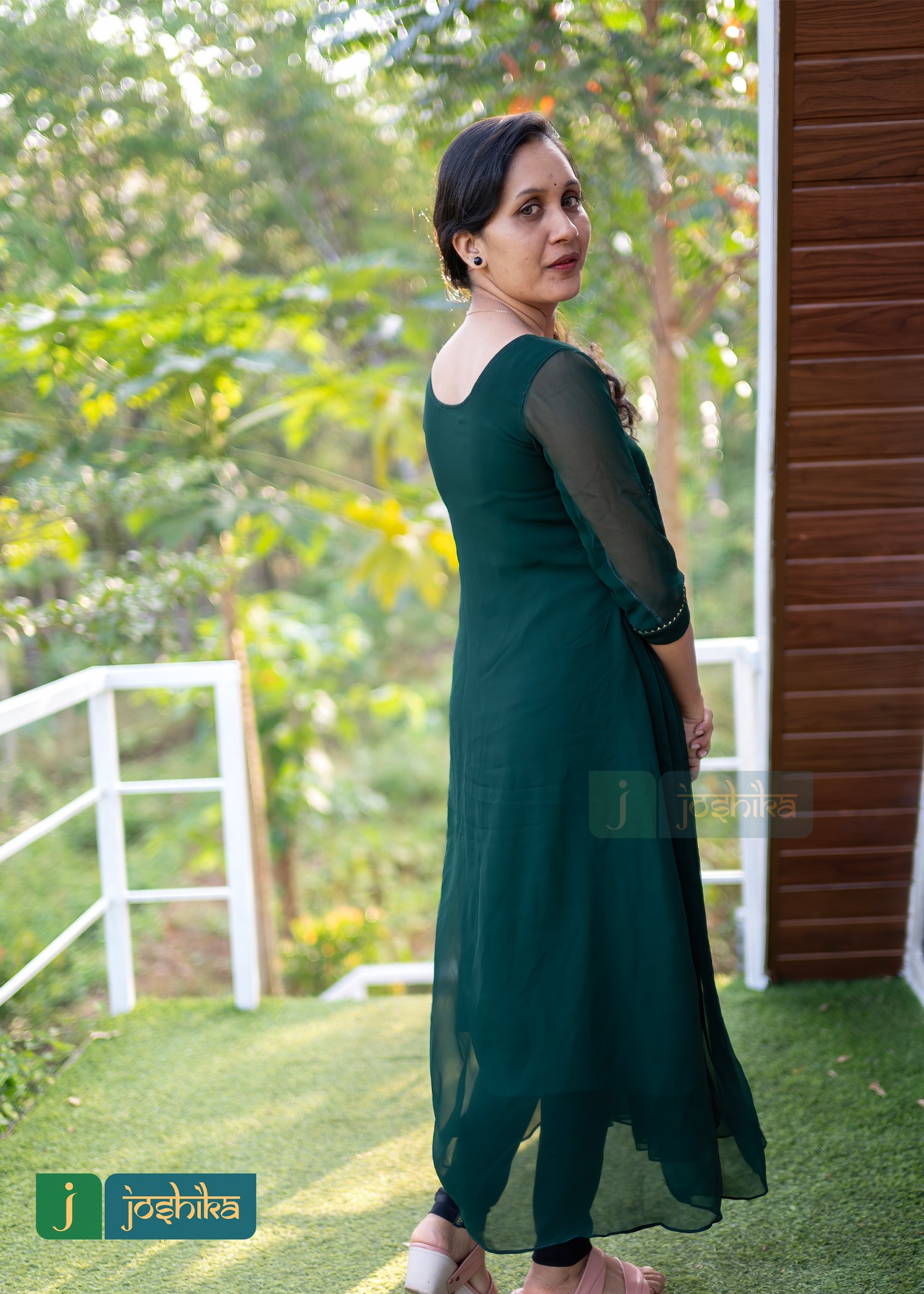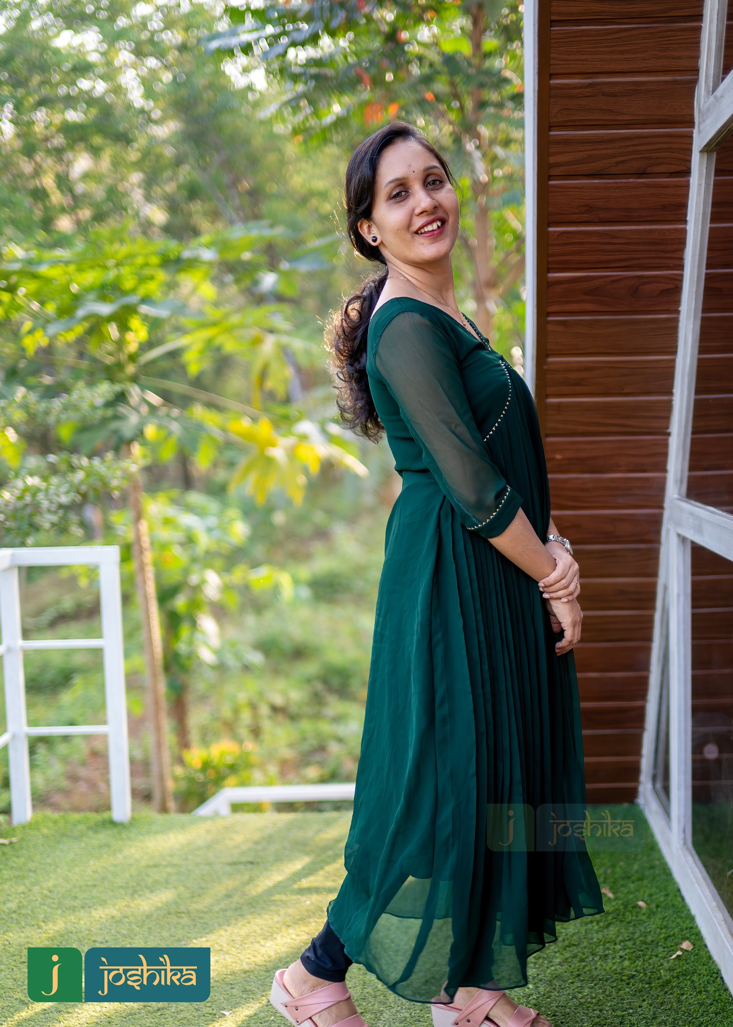 Aliya cut pleated green George kurta embellished with golden lace.