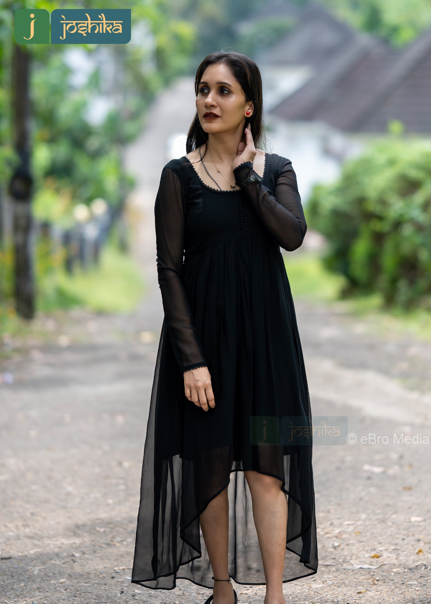 BLACK COLOR GEORGETTE HIGH-LOW KURTA