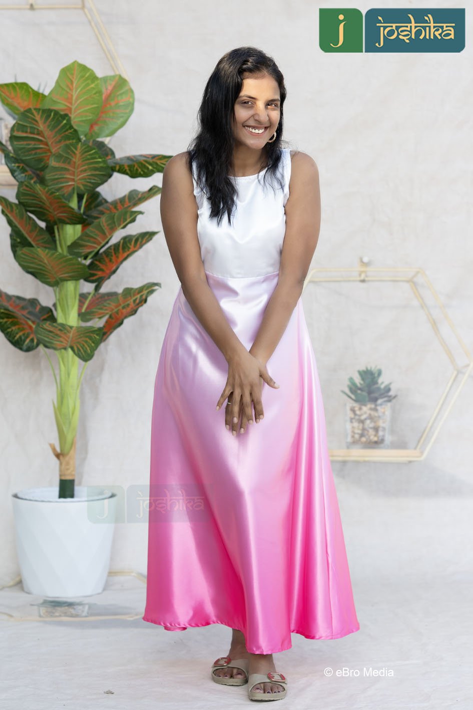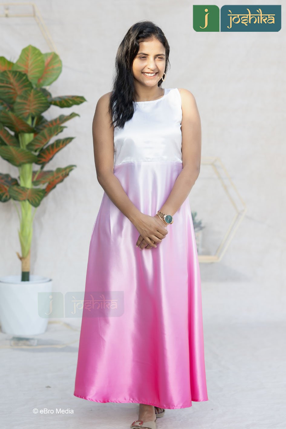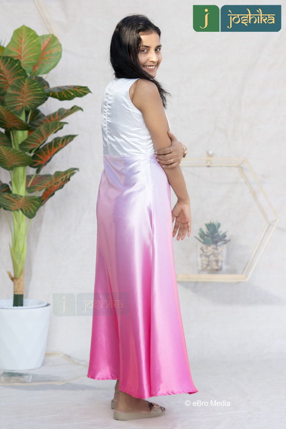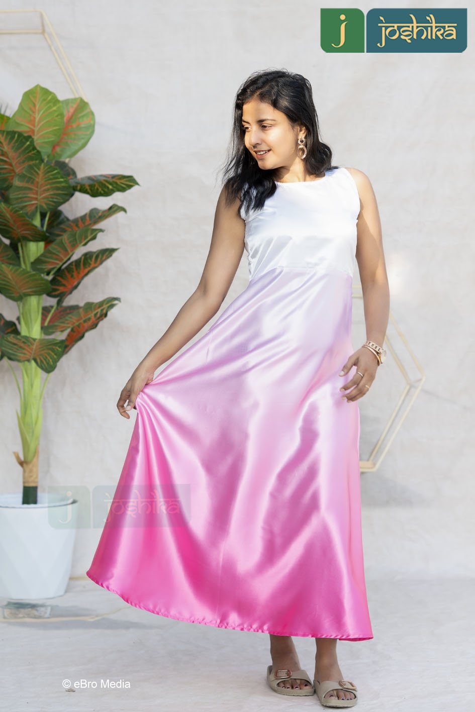 Step into effortless grace with this beautifully shaded satin maxi dress. Designed with a refined close neckline and a sleeveless silhouette , this dress blends sophistication with modern charm. The soft white -to-pink ombre shading creates a dreamy, flowing effect, while the satin fabric adds a subtle sheen for a luxurious finish. Perfect for brunches, evening gatherings, festive occasions, or special celebrations , this dress offers comfort , style , and timeless appeal in one stunning look.