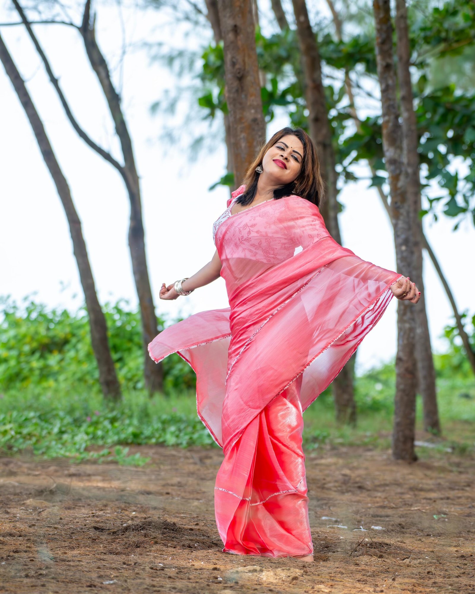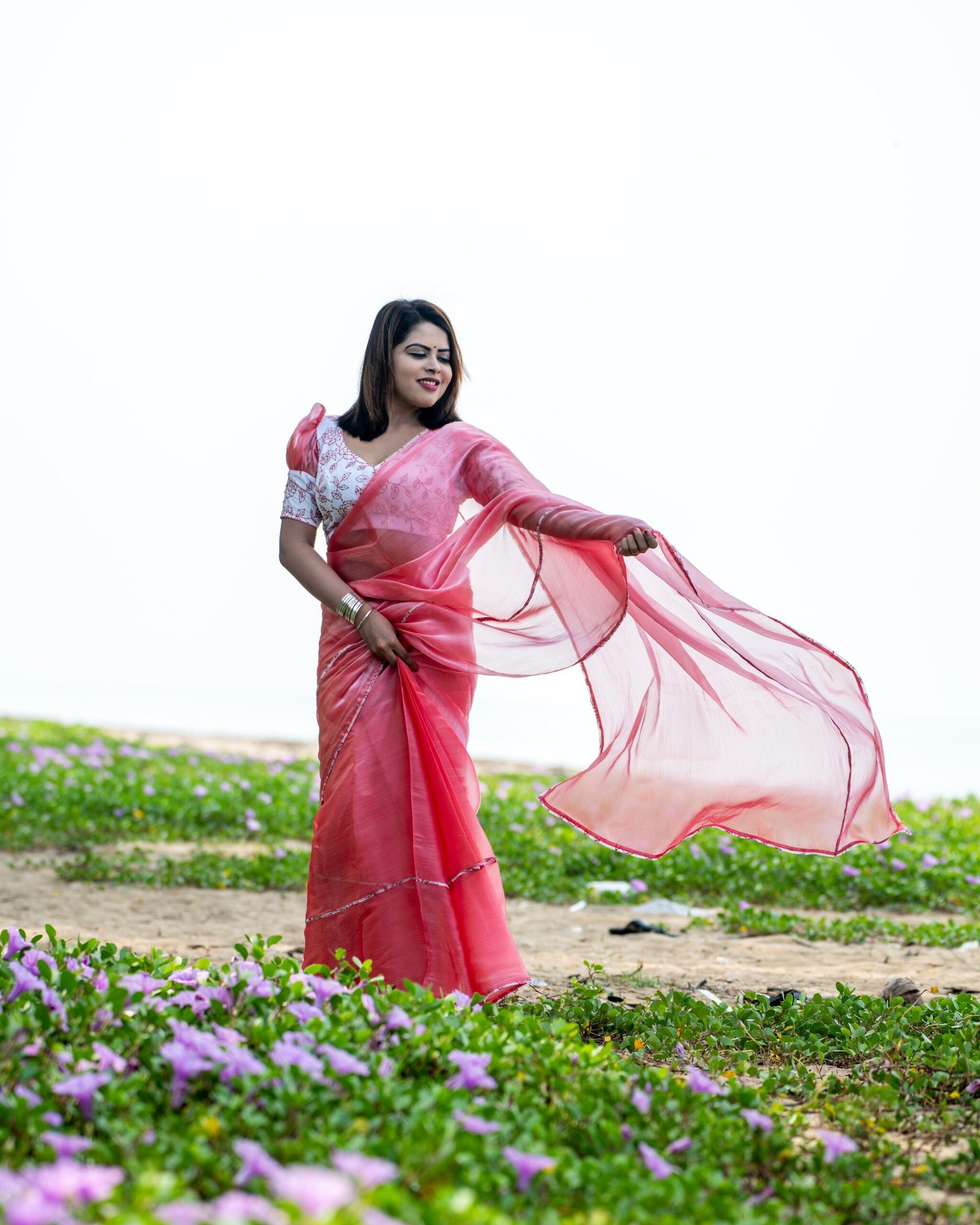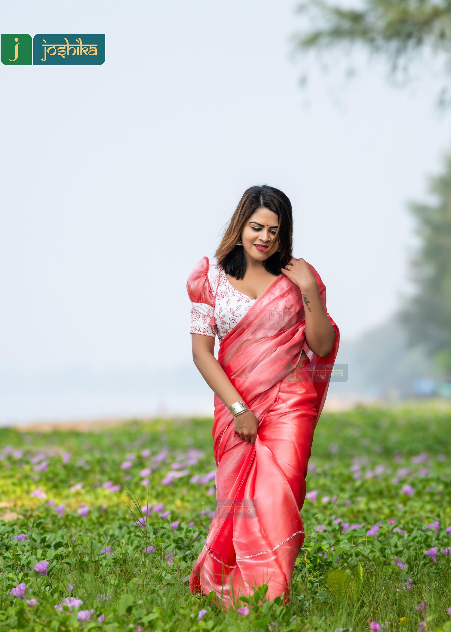 BURBERRY CHIFFON SAREE WITH UNSTITCHED EMBROIDERED ORGANZA BLOUSE MATERIAL