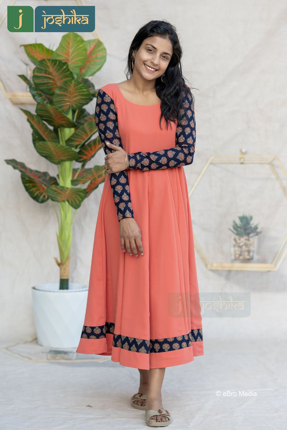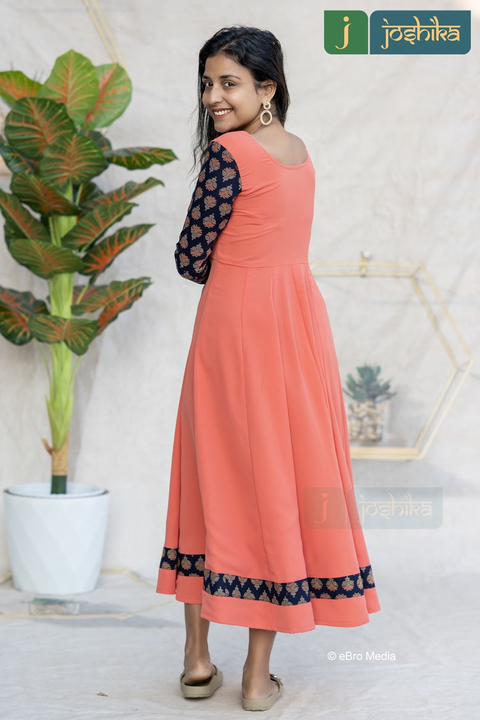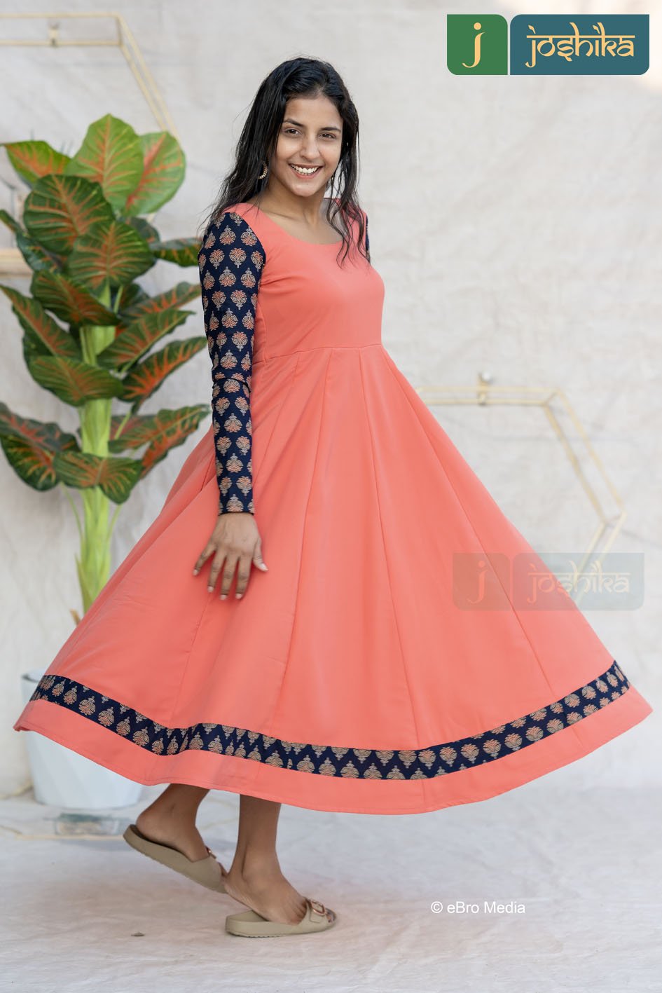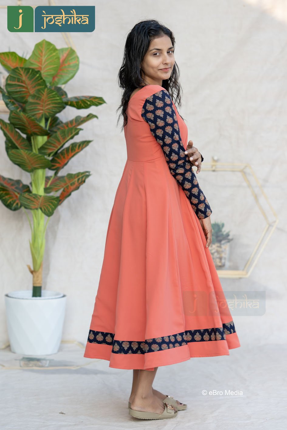 CLASSIC CORAL PANEL ANARKALI WITH AJRAKH DETAILINGCLASSIC CORAL PANEL ANARKALI WITH AJRAKH DETAILING