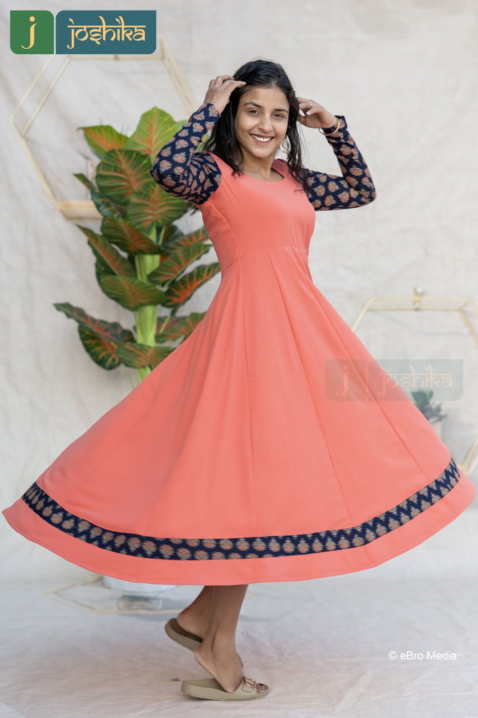 Step into effortless with our coral panel kurta featuring exquisite ajrakh accents. Designed in a flattering flared panel silhouette , this kurta offers graceful movement and a timeless feminine charm. The rich coral body is beautifully complemented by contrasting ajrakh-printed sleeves and a coordinated border along the hemline , adding a touch of traditional artistry to the contemporary design.