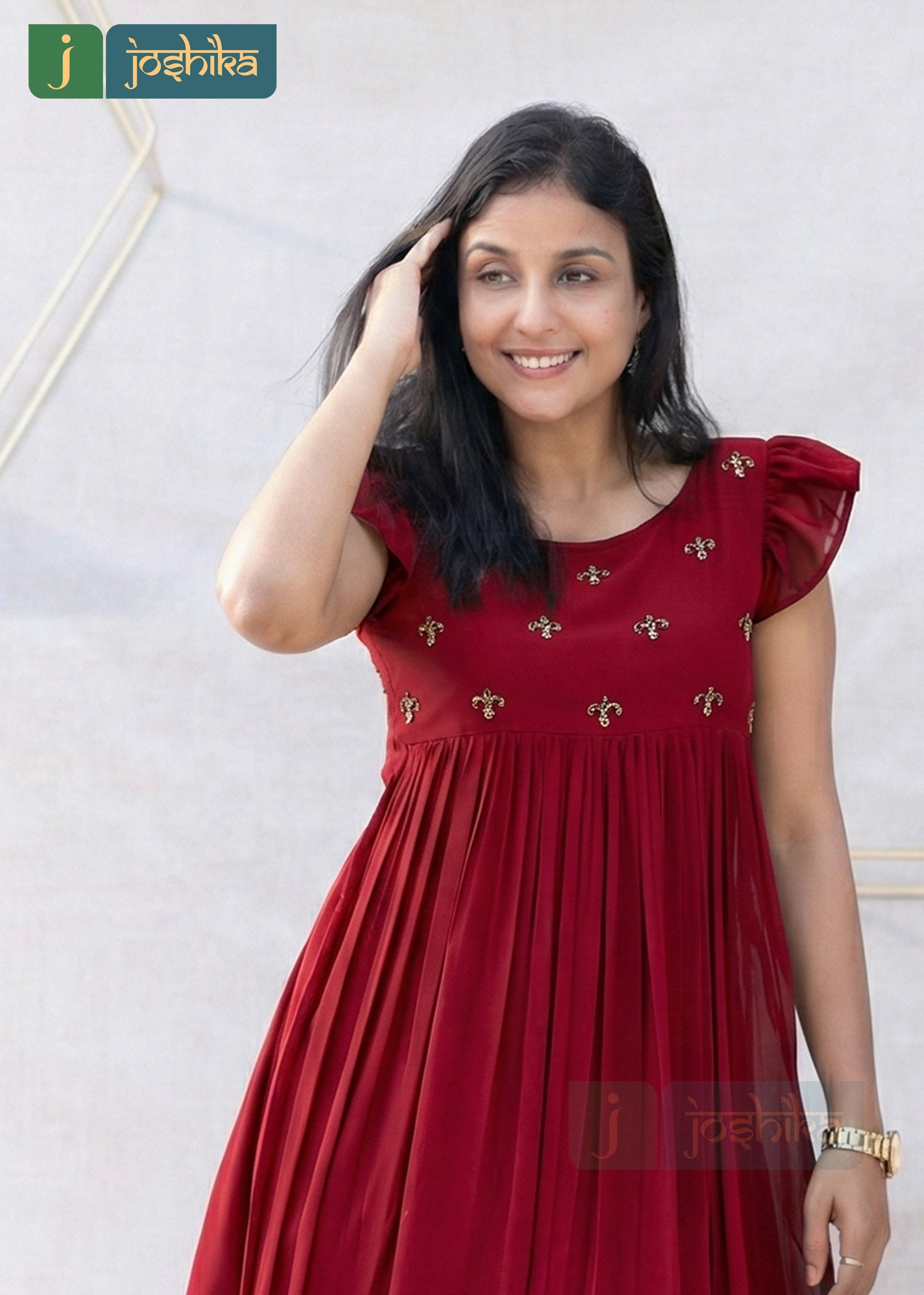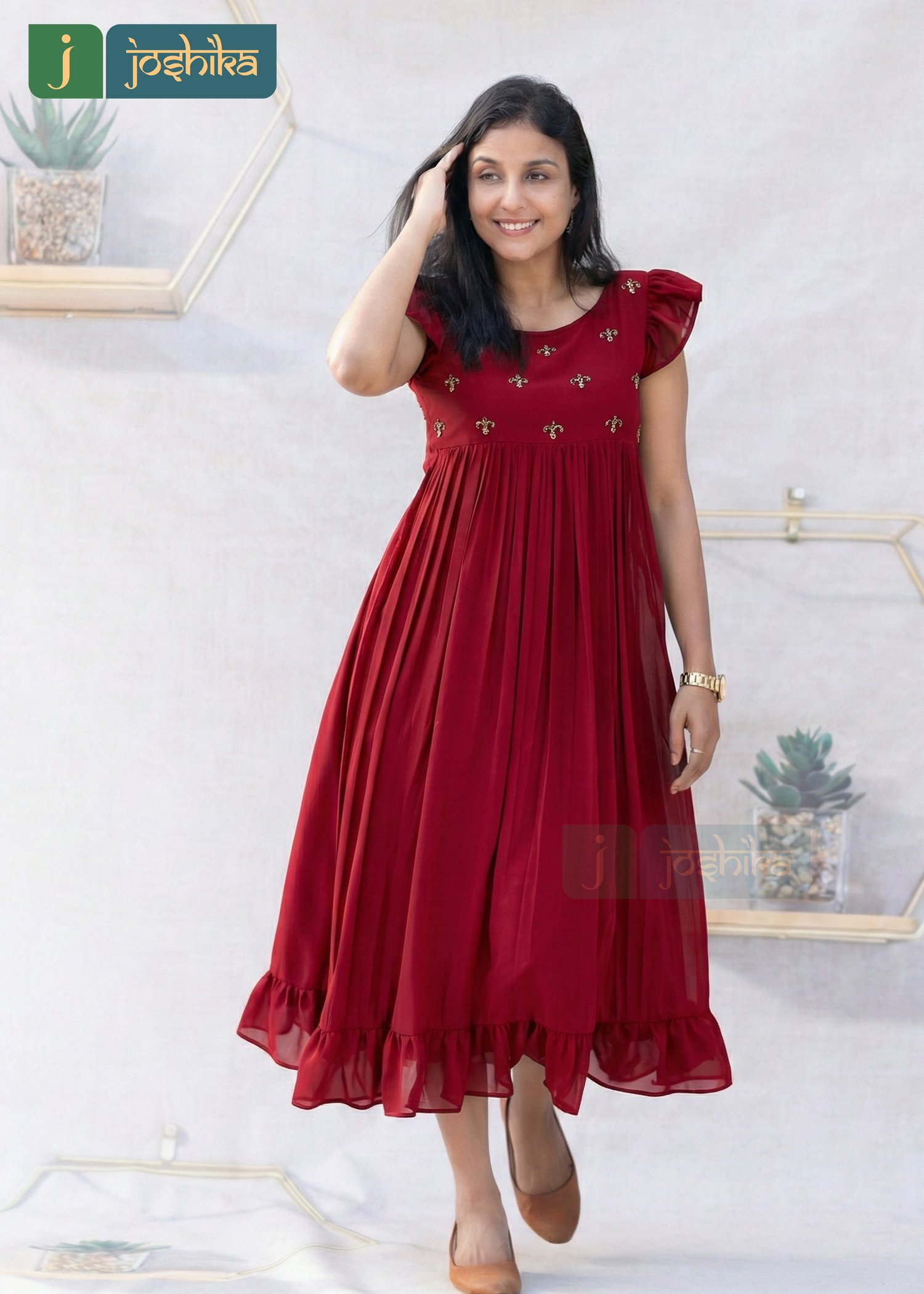 Elevate your everyday elegance with this beautifully crafted frock style kurta, designed to blend comfort with timeless charm. Made in a flowy silhouette, the kurta features delicate hand embroidery on the yoke that adds a refined artisanal touch.