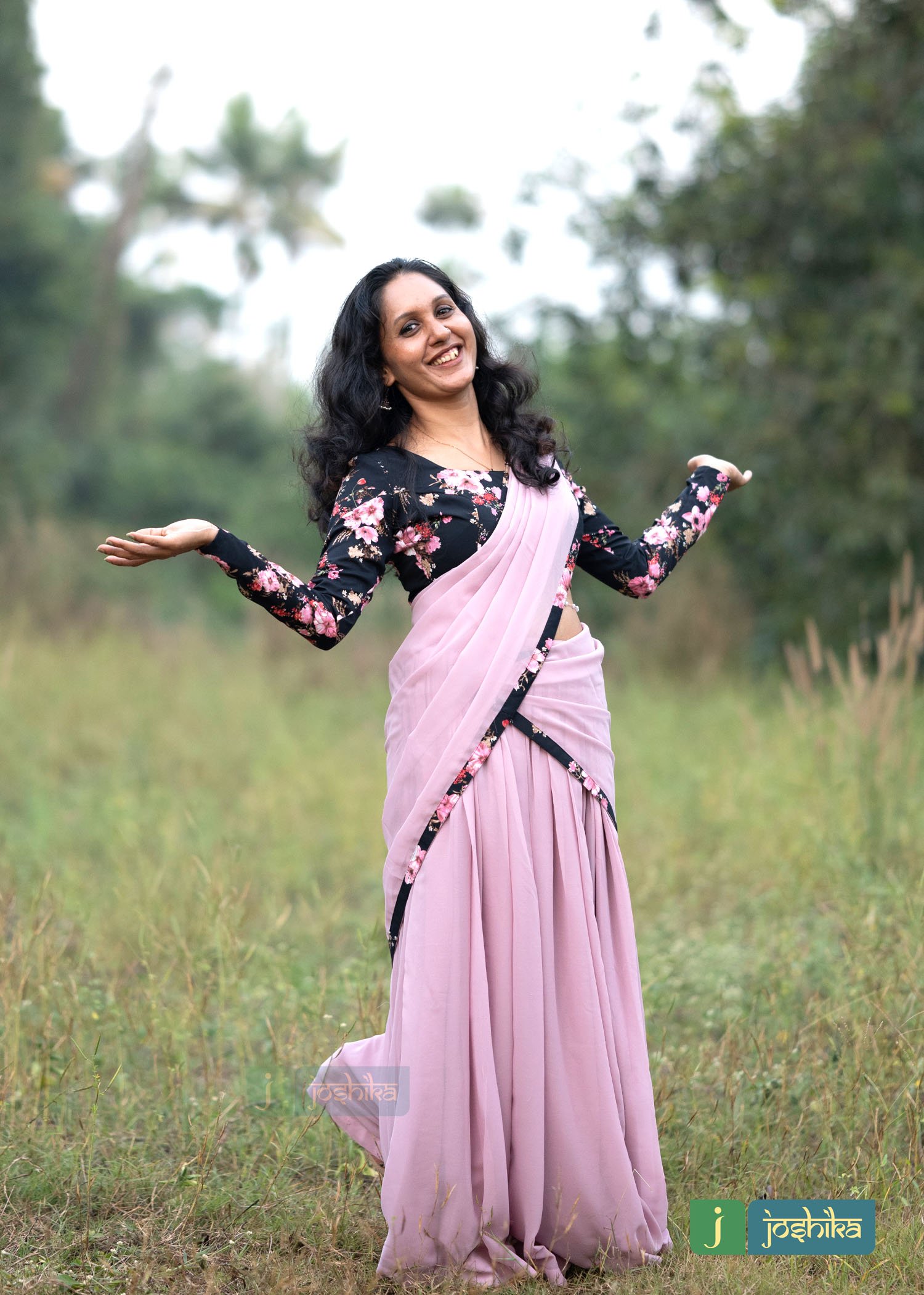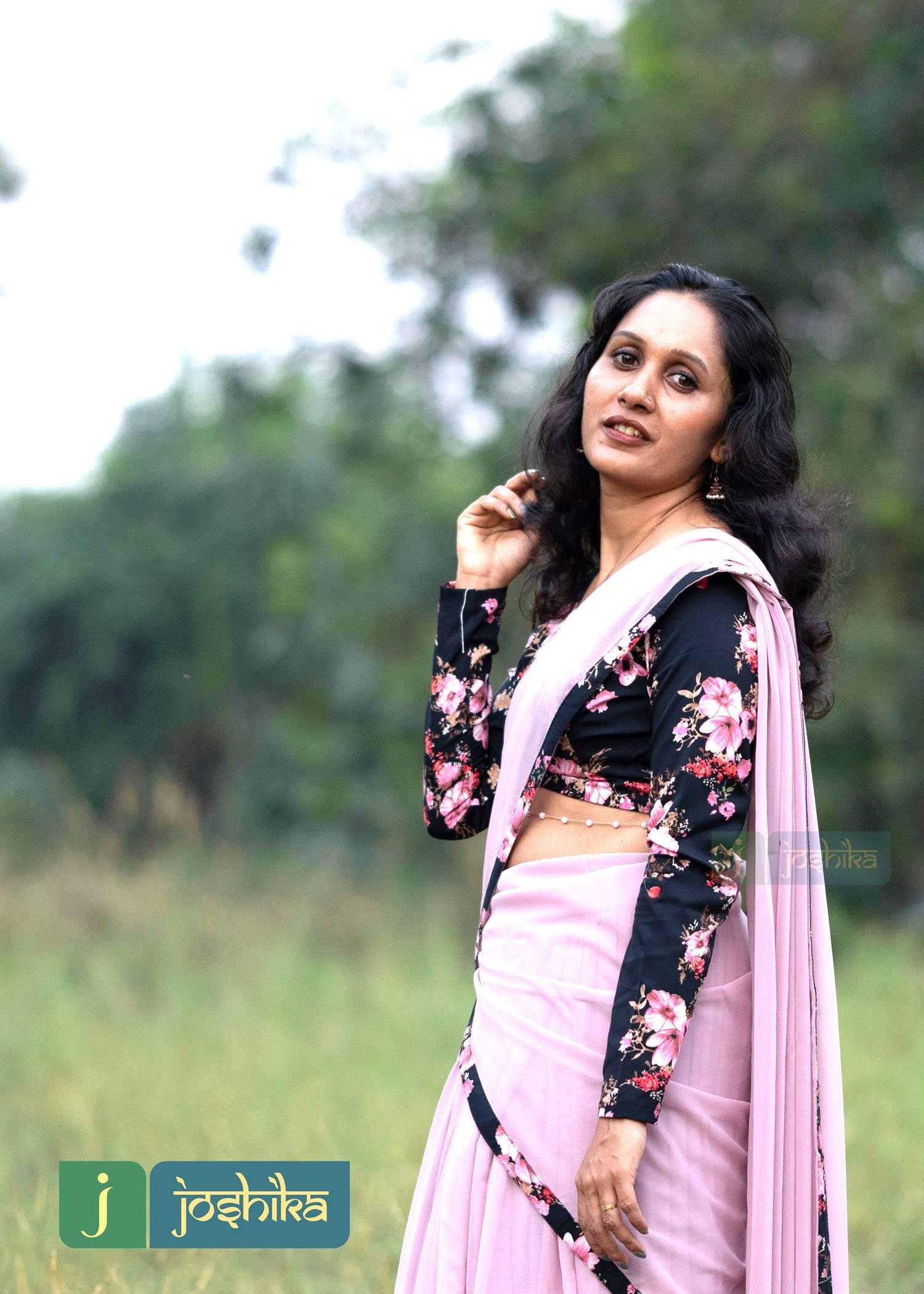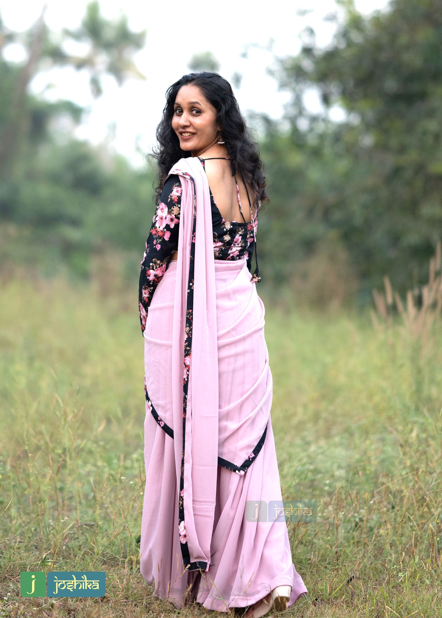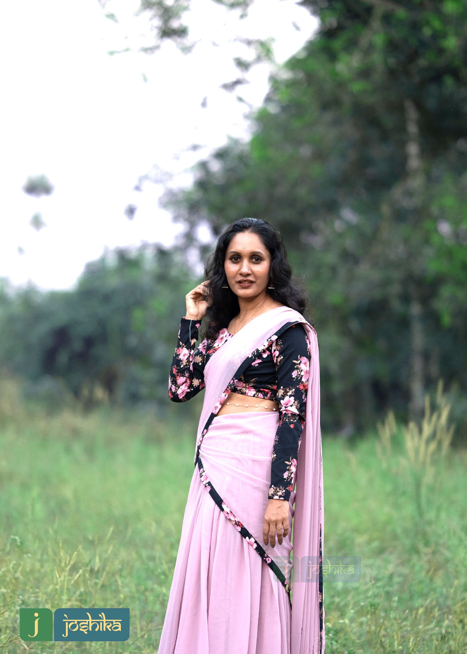 Georgette Davani with printed crape crop top and georgette dupatta .
