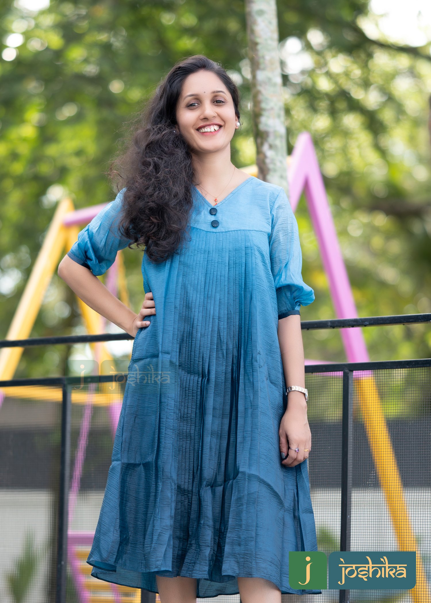 Double shaded crape silk pleated kurta with pleated sleeves.