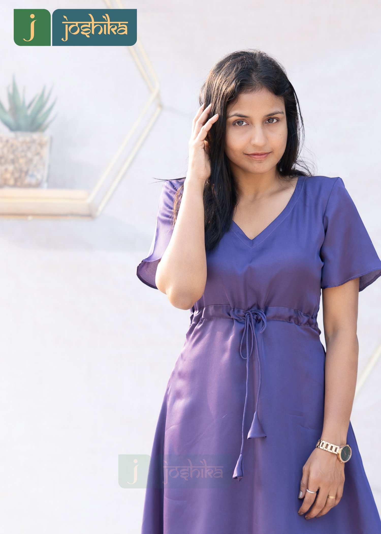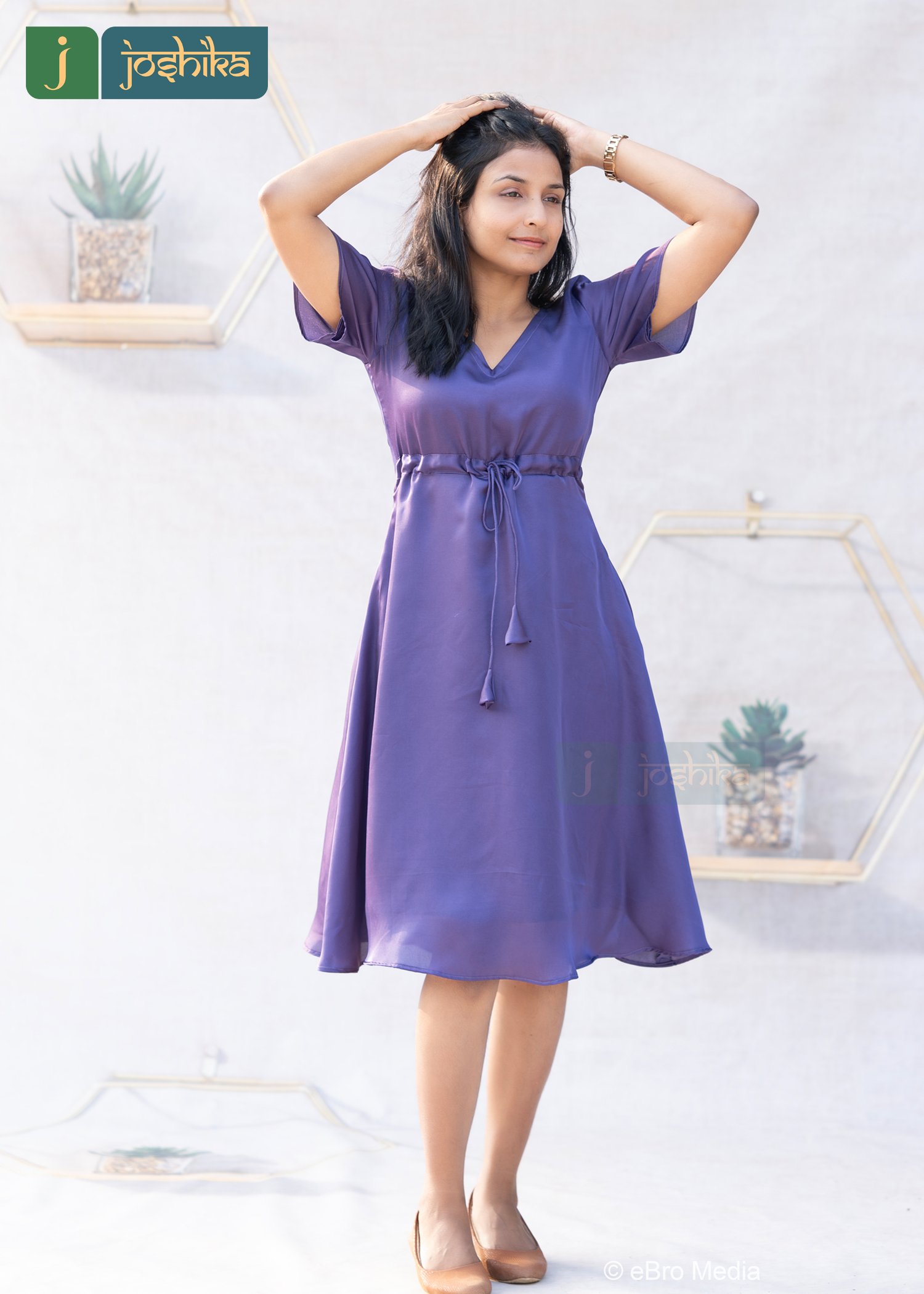 Step into effortless elegance with this beautifully crafted A-line frock. Designed with a flattering V-neckline and soft , flowy silhouette , this frock features a delicate waist tie that enhances your natural shape while ensuring all-day comfort. The lightweight fabric drapes gracefully , making it perfect for casual outings, brunch dates, or relaxed festive gatherings. Style it with flats for a daytime look or dress it up with heels for an elegant evening ensemble.