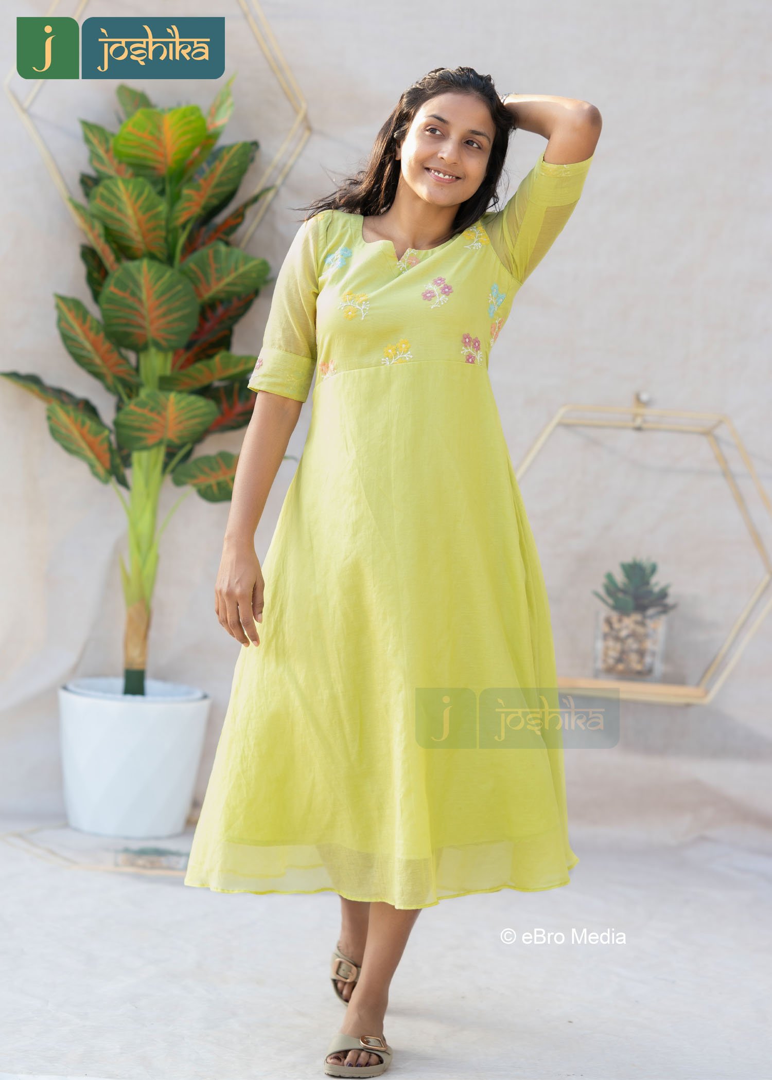 This beautifully designed Chanderi kurta showcase intricate floral embroidery on the yoke and sleeves, enhancing its classic appeal. The airy fabric drapes effortlessly, offering all- day comfort with a touch of sophistication. ideal for festive gatherings, workwear elegance, or refined everyday styling.