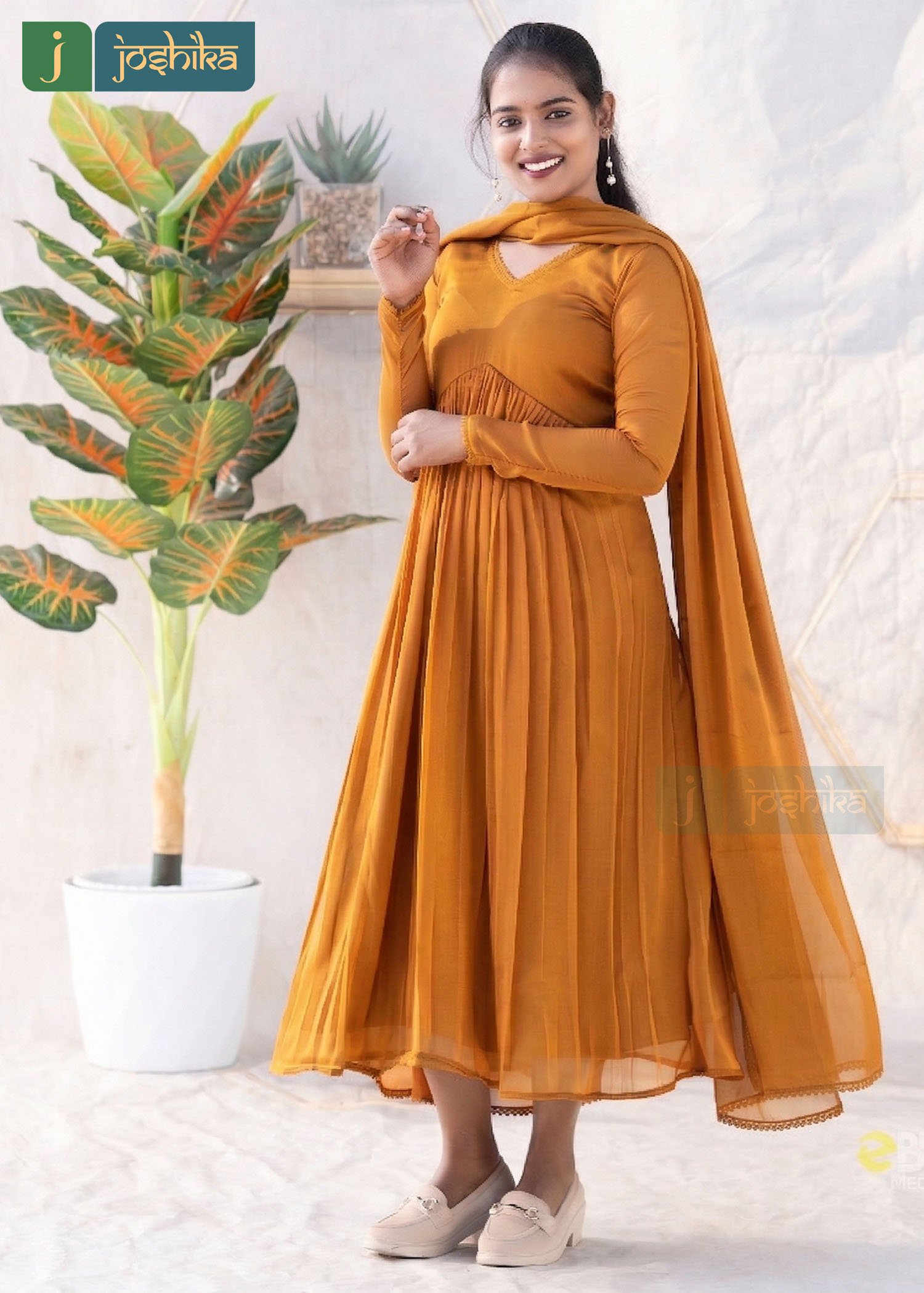 ELEGANT GEORGETTE ALIYACUT KURTA WITH DUPATTA AND LACE DETAIL