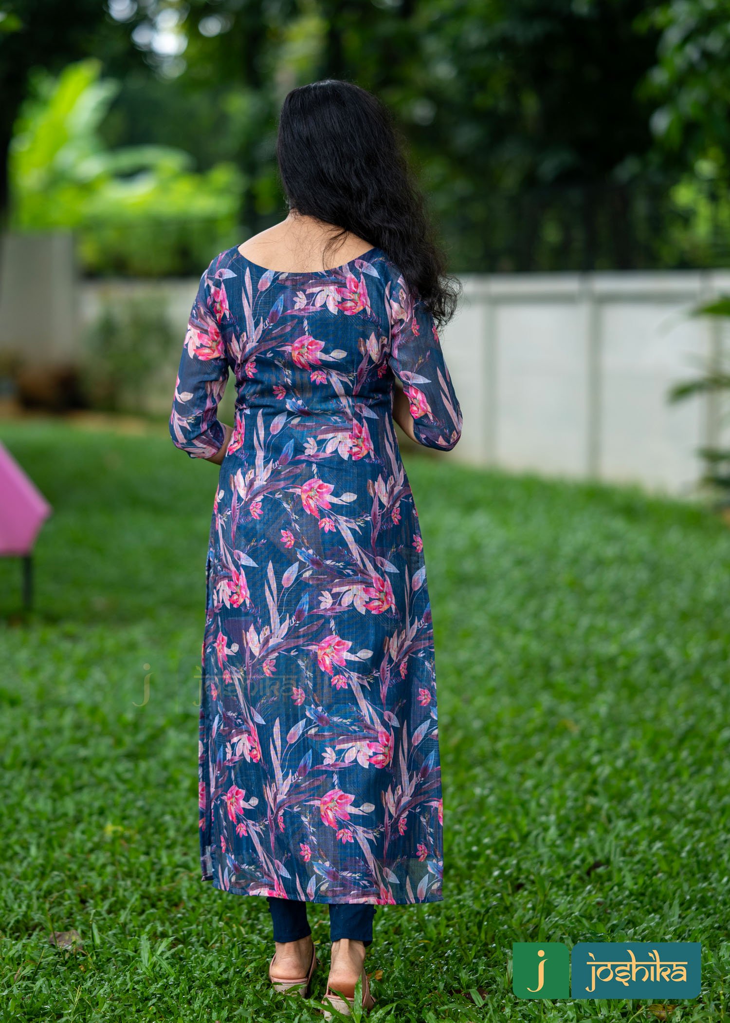 Elevate your style with our stunning slitted kurta, designed to make your feel confident and beautiful. Made from high quality linen fabric, this kurta features a unique slit design that adds a touch of elegance to your overall look. The vibrant floral pattern and comfortable fit make it perfect for both casual and formal occasions .pair it with leggings or jeans for a chic and modern look. Weather your heading to work or social gathering ,our slitted kurta is sure to turn heads.