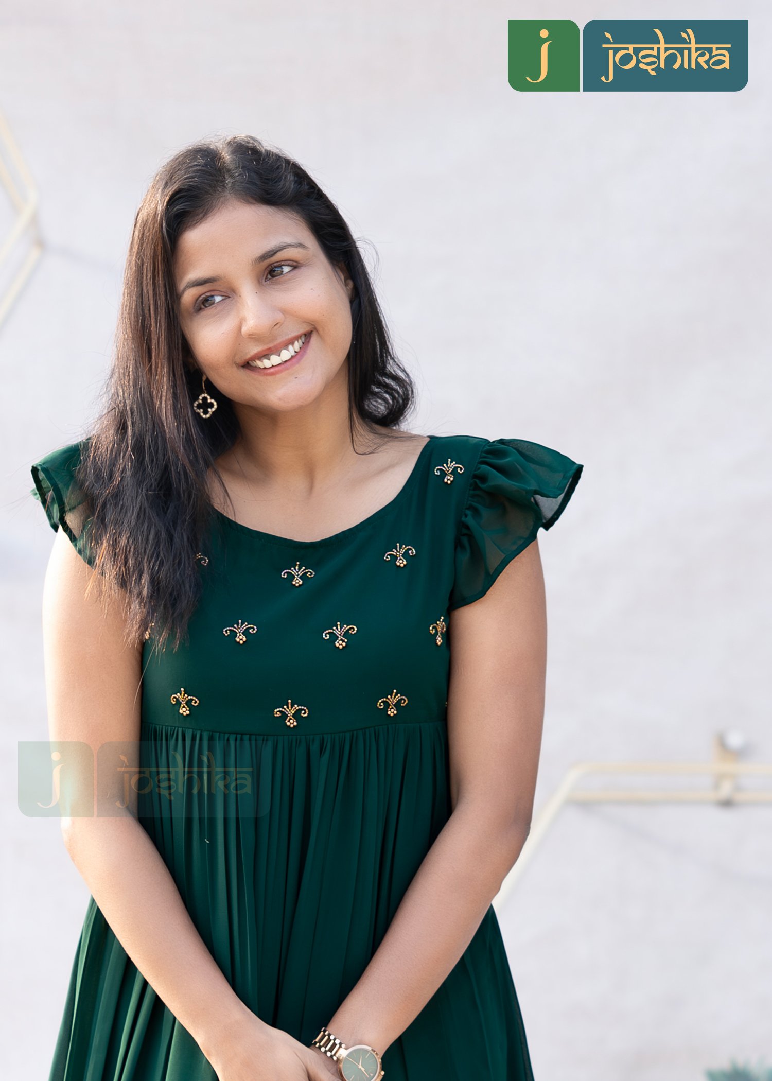 EMERALD GREEN GEORGETTE FROCK KURTA WITH HAND EMBROIDERYEMERALD GREEN GEORGETTE FROCK KURTA WITH HAND EMBROIDERY