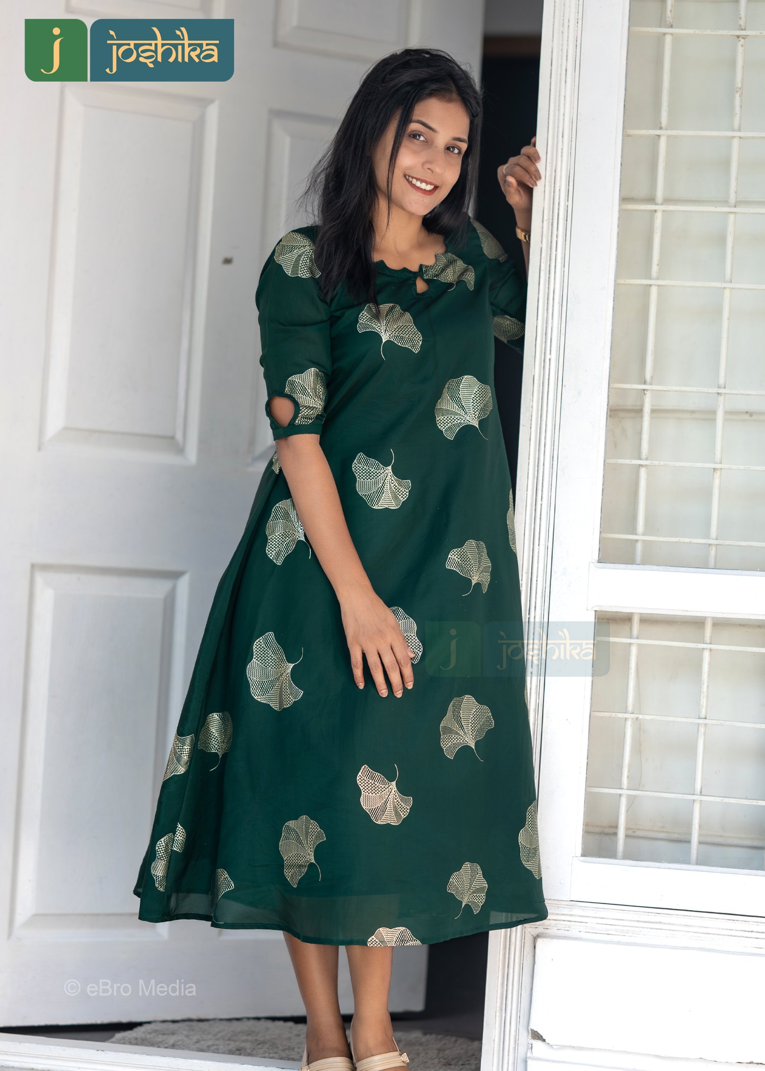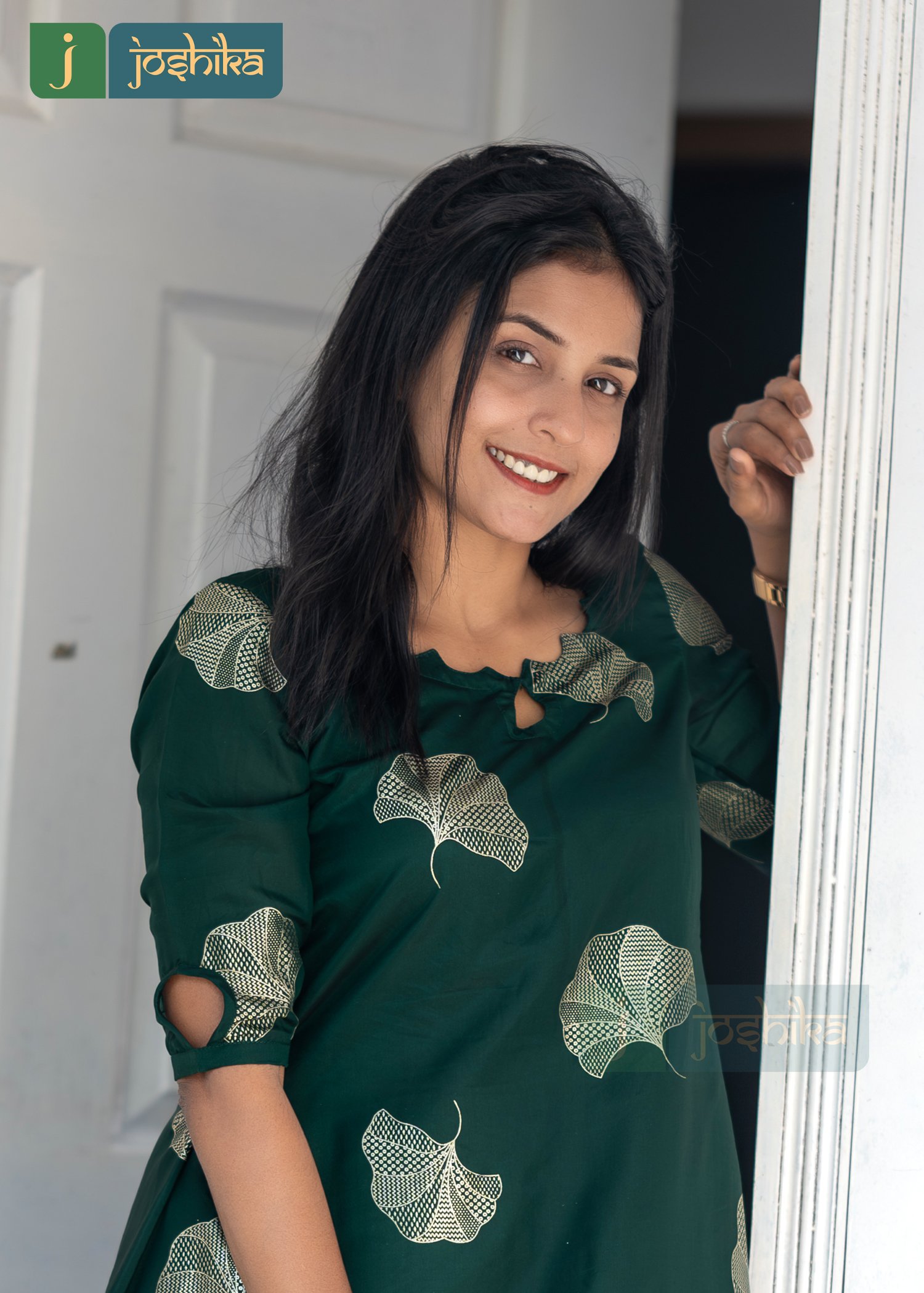Step into effortless elegance with this beautifully designed A-line kurta, crafted in a rich emerald green shade. Featuring an all- over subtle leaf- inspired print. this kurta flows gracefully to create a flattering silhouette. The comfortable fabric and airy fit make it ideal for all-day wear, while the stylish sleeve cut-out detail adds a modern touch . Perfect for office wear, casual outings, or small gatherings, this kurta pairs seamlessly with leggings, palazzos, or straight pants for a refined ethnic look.