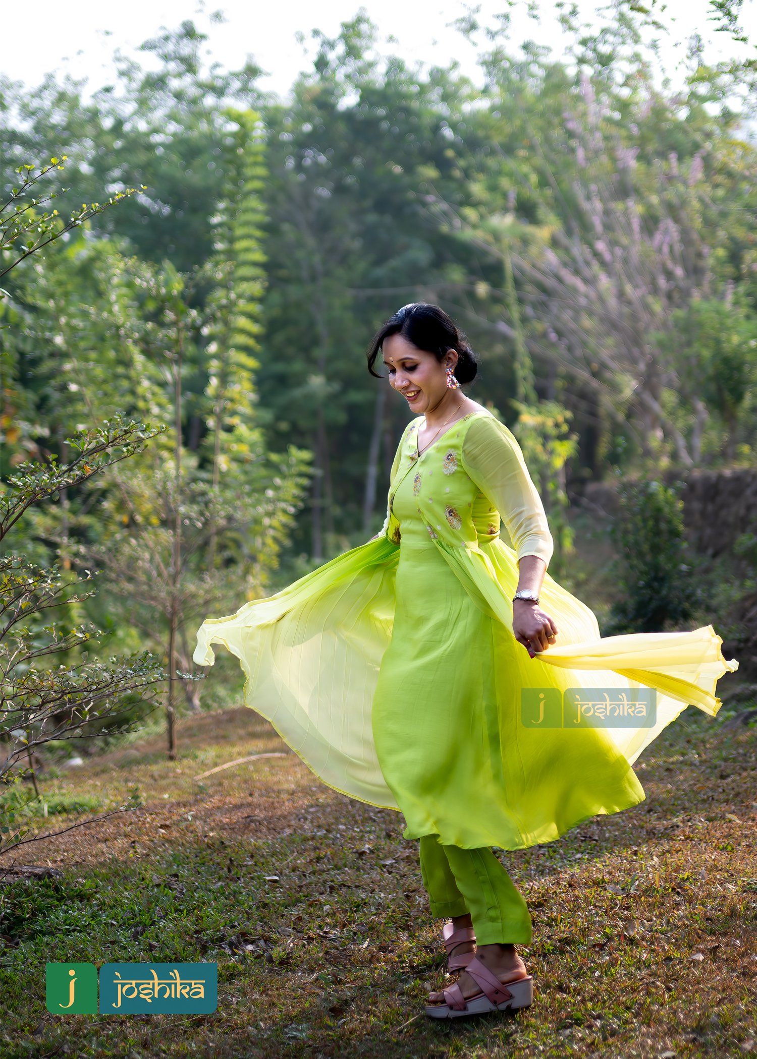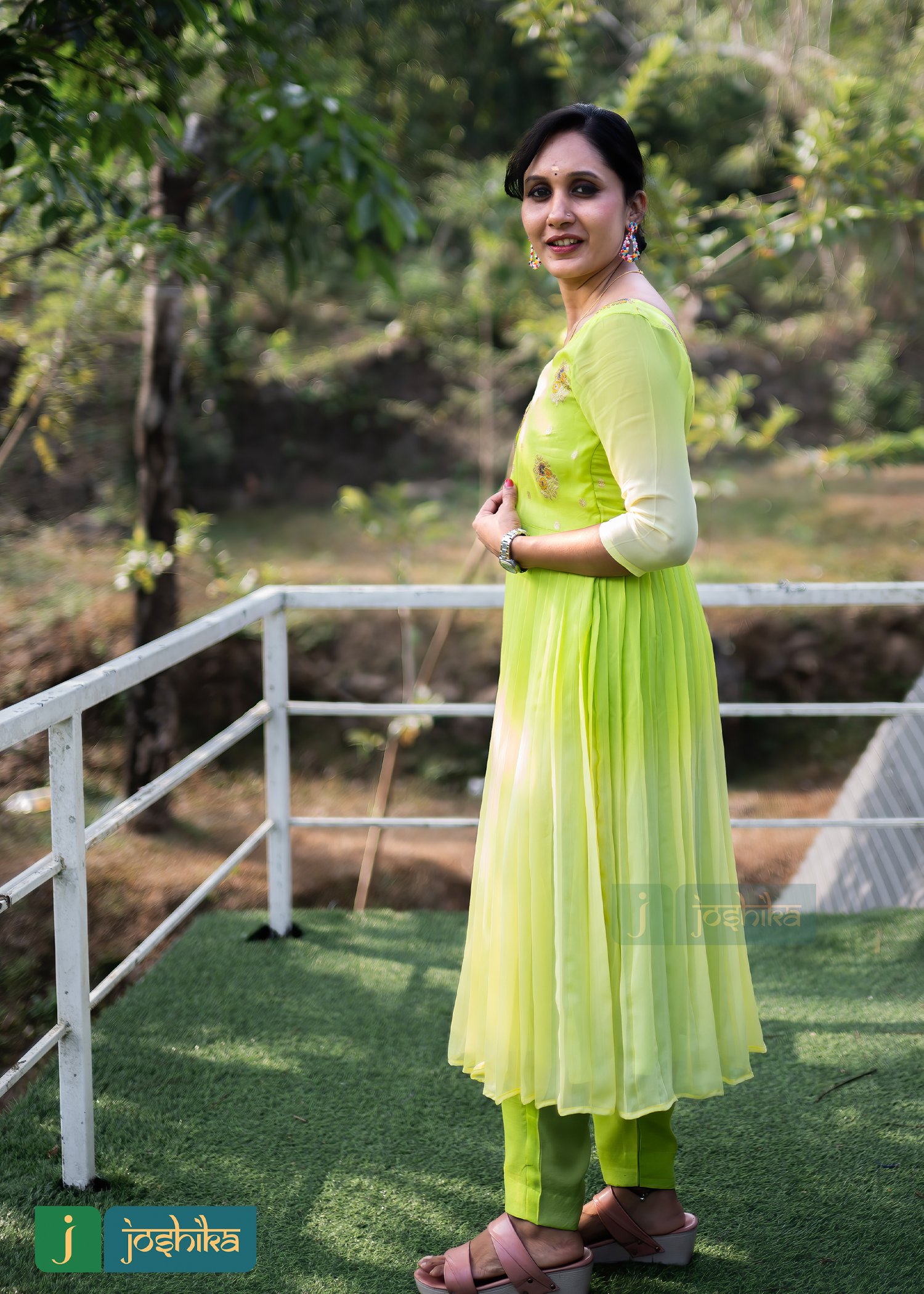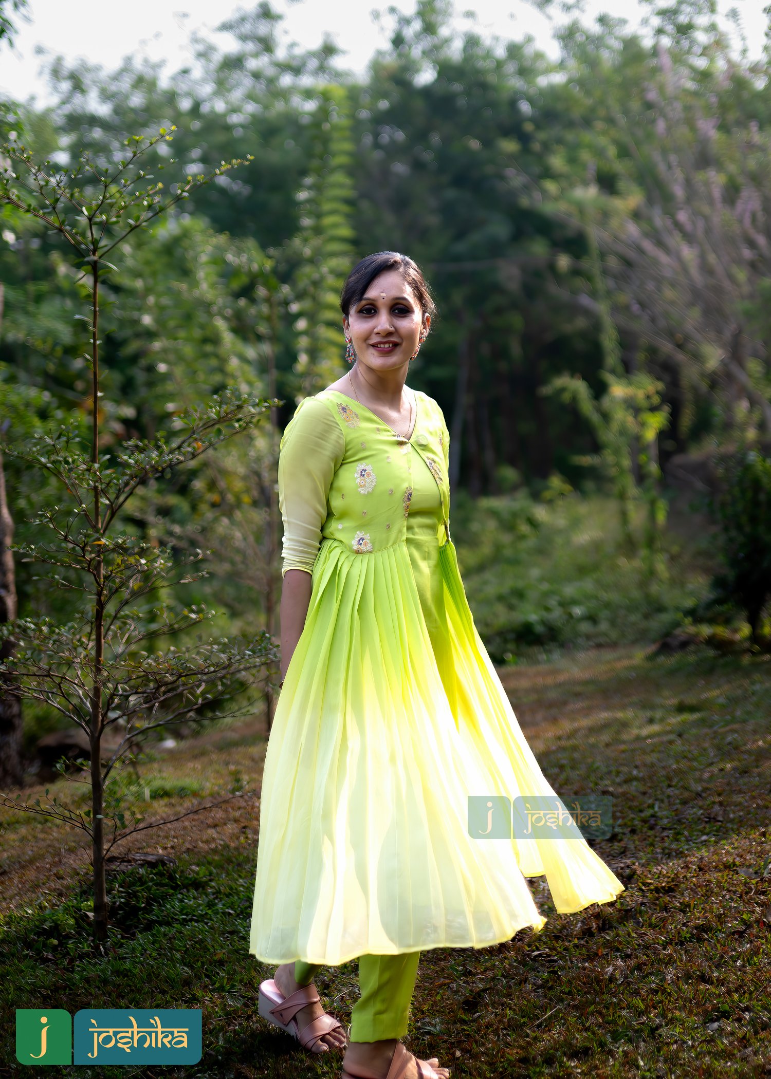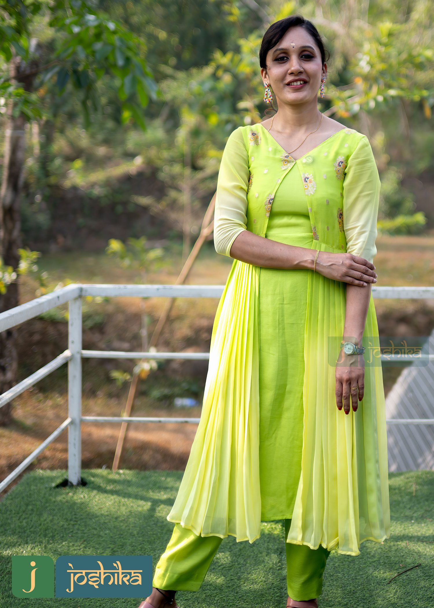 Ethnic jacket kurta, Double shade, Lemon yellow and lemon green color, Georgette and Banaras material, Santoon pencil bottom.