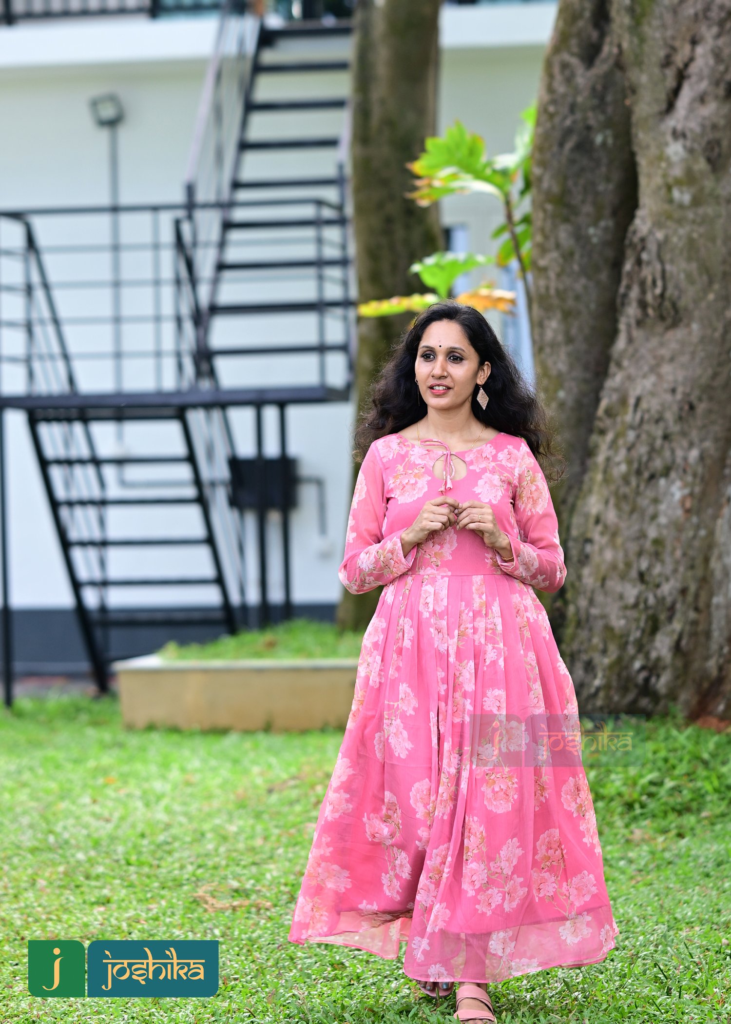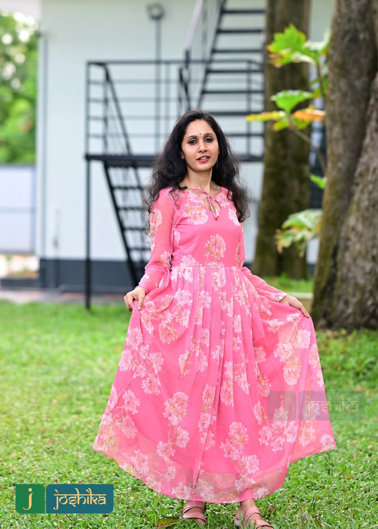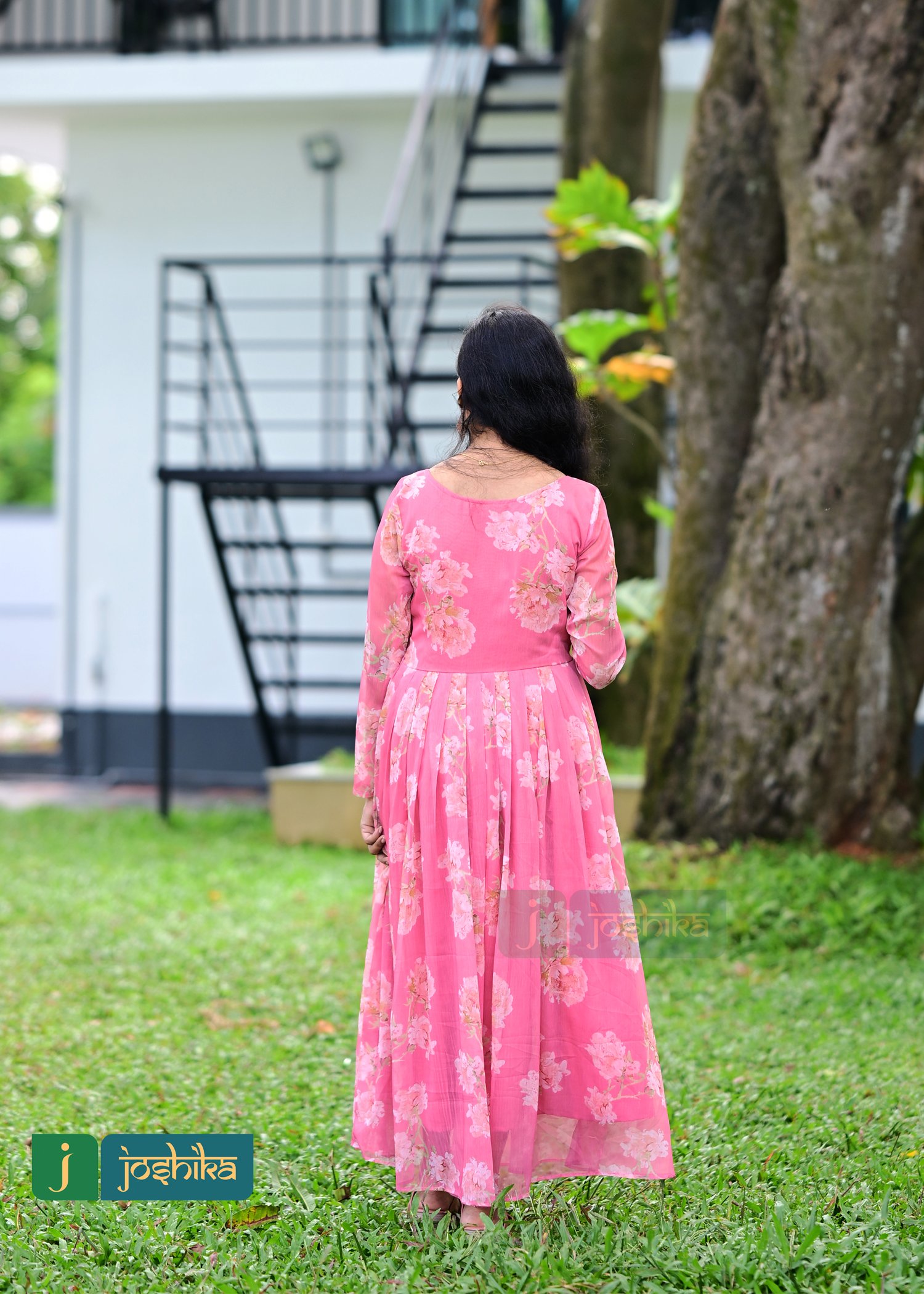 FLORAL PRINTED PLEATED GEORGETTE KURTA