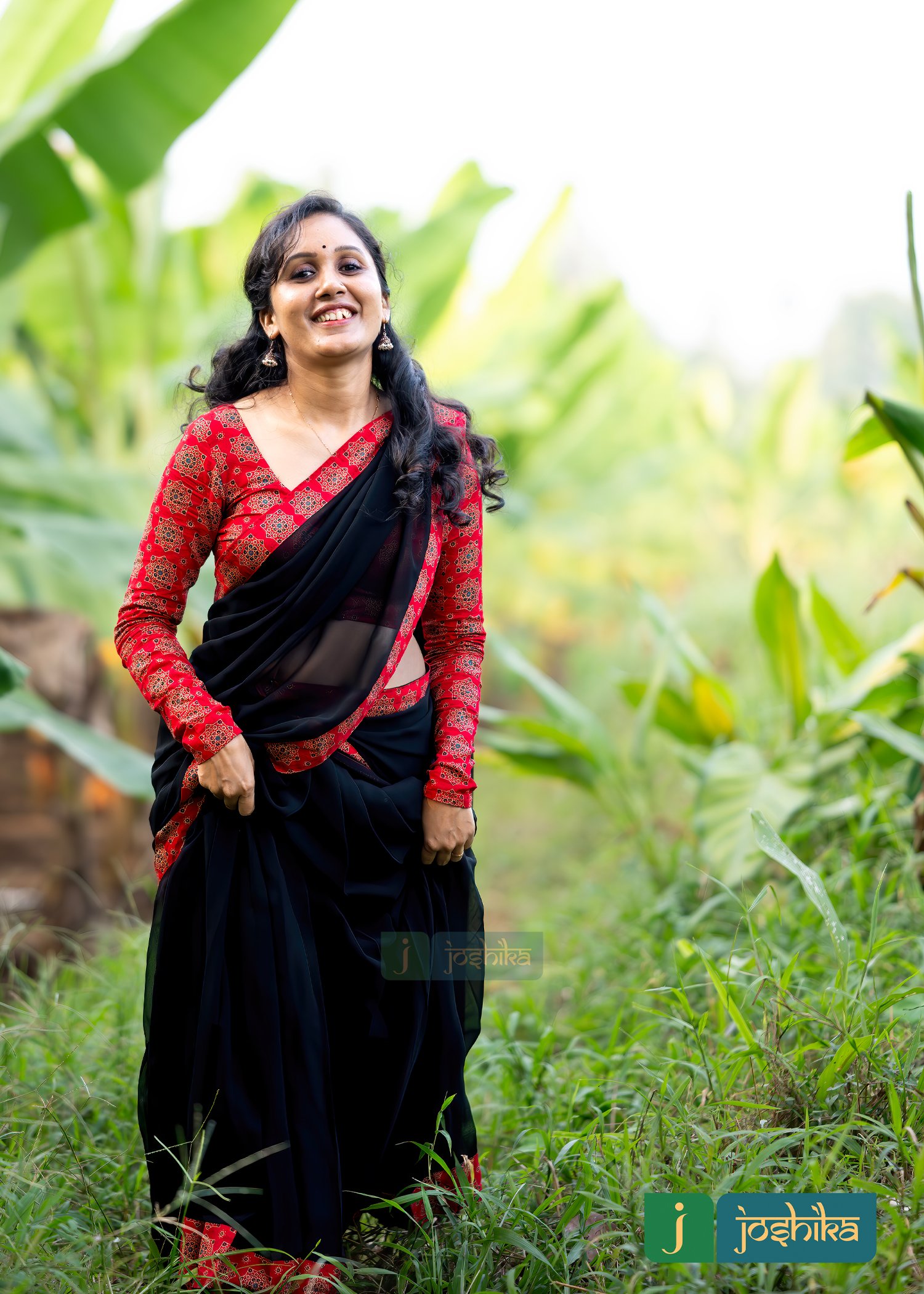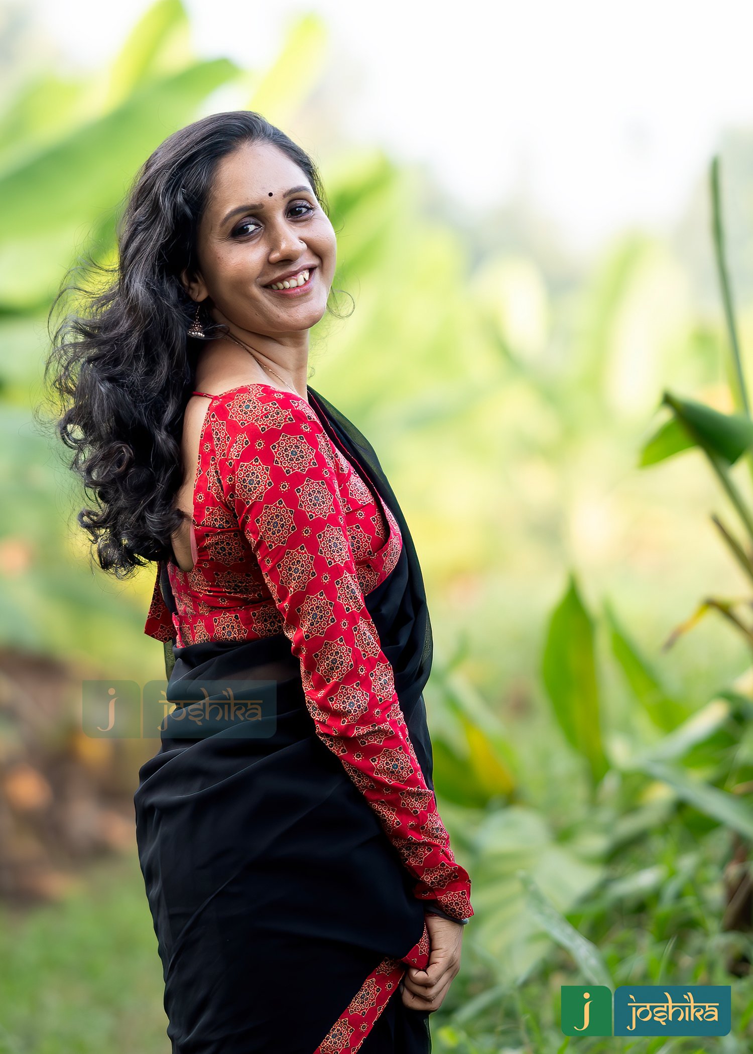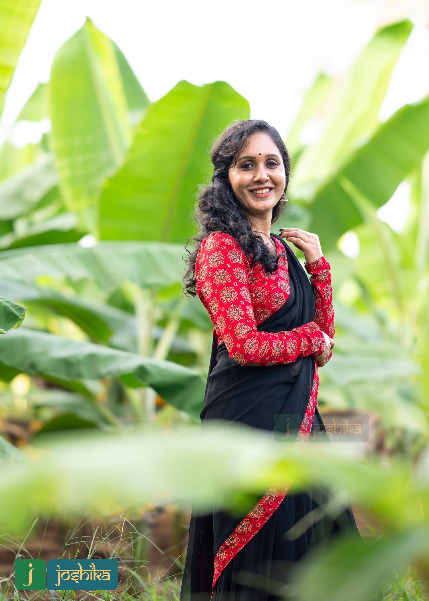 Indian traditional Black color Davani set embellished with ajrakh boarder.