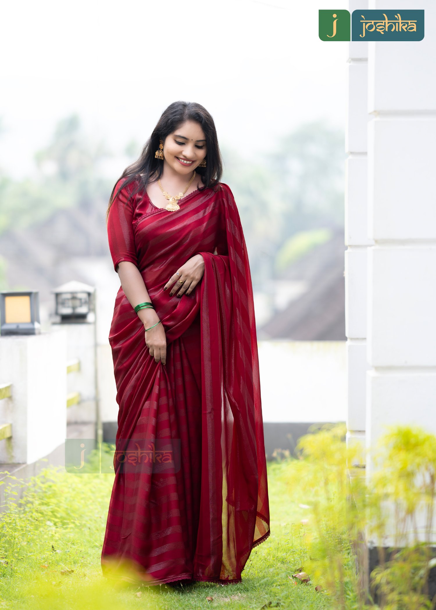MAROON GEORGETTE SAREE WITH SILVER STRIPES