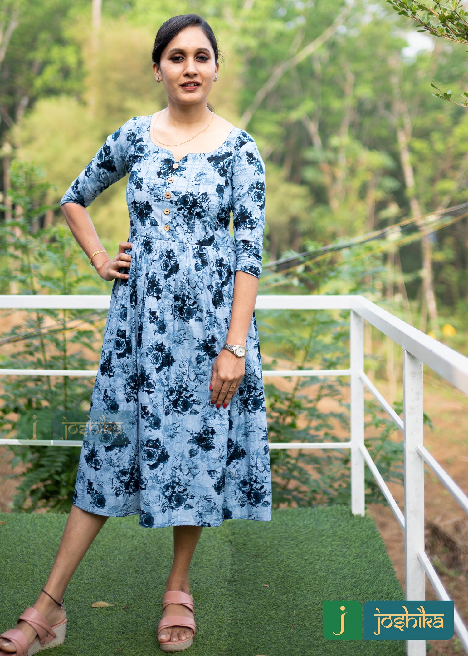 Printed cotton maternity wear ,gathered ,two side zips and pintuck designed in yoke.