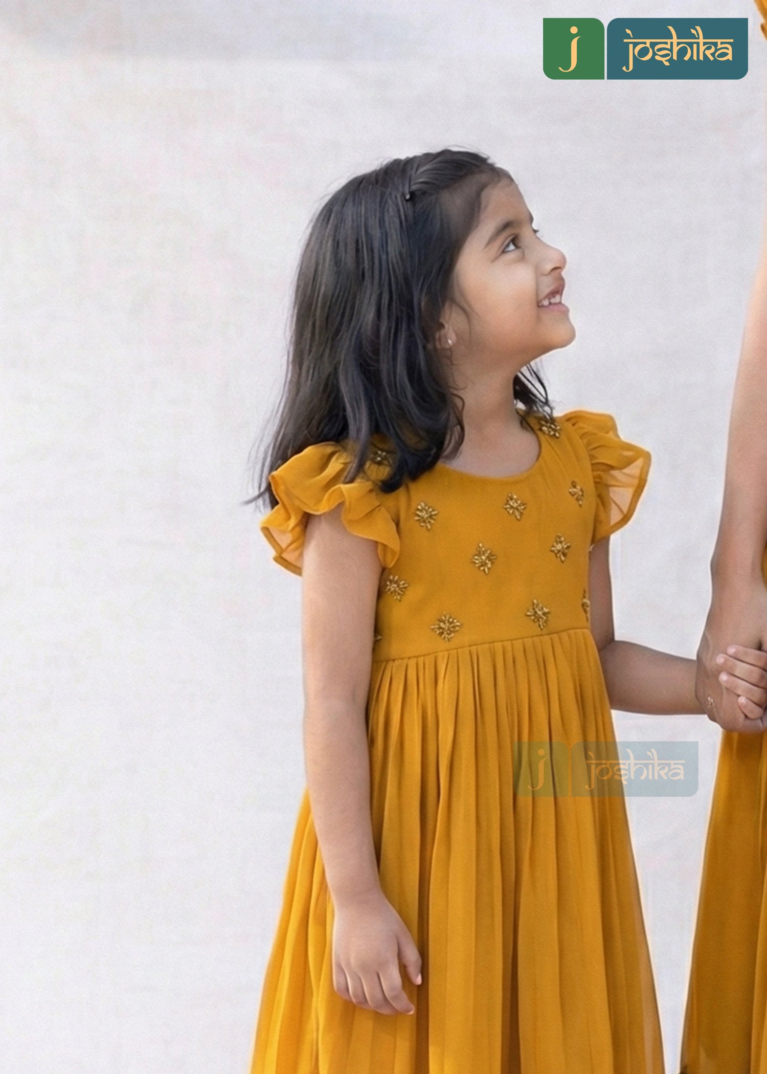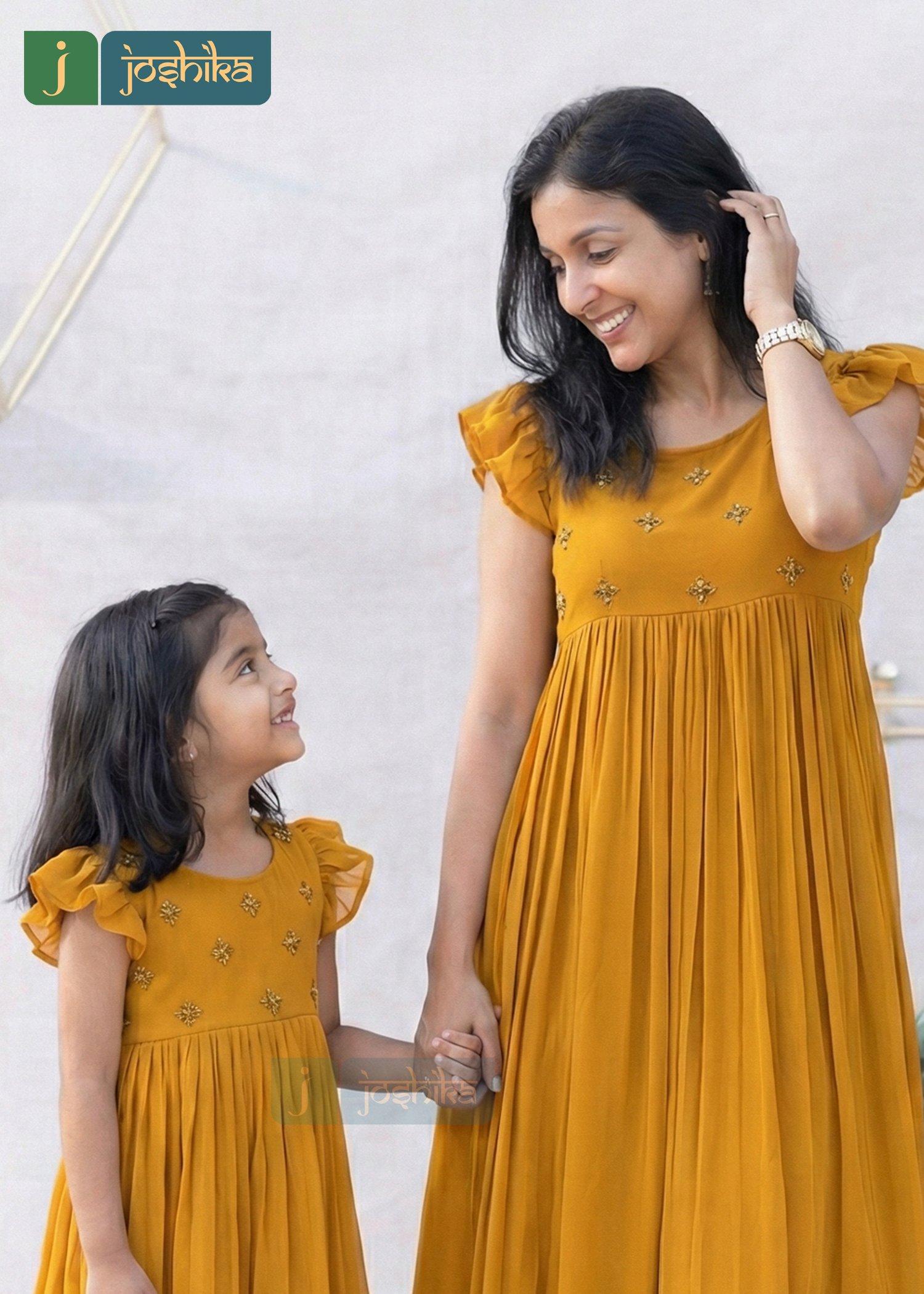 Celebrate togetherness in timeless style with this elegant mother-daughter combo frock kurta. Crafted in lightweight georgette , both outfit feature delicate hand embroidery on the yoke, soft gathers for a graceful flare, and ruffled sleeve and hem detailing for a charming finish. The rich mustard hue adds warmth and sophistication, making it perfect for festive occasions, family celebrations, or special moments together. Comfortable , flowy, and thoughtfully designed, this matching set beautifully blends tradition with contemporary elegance.