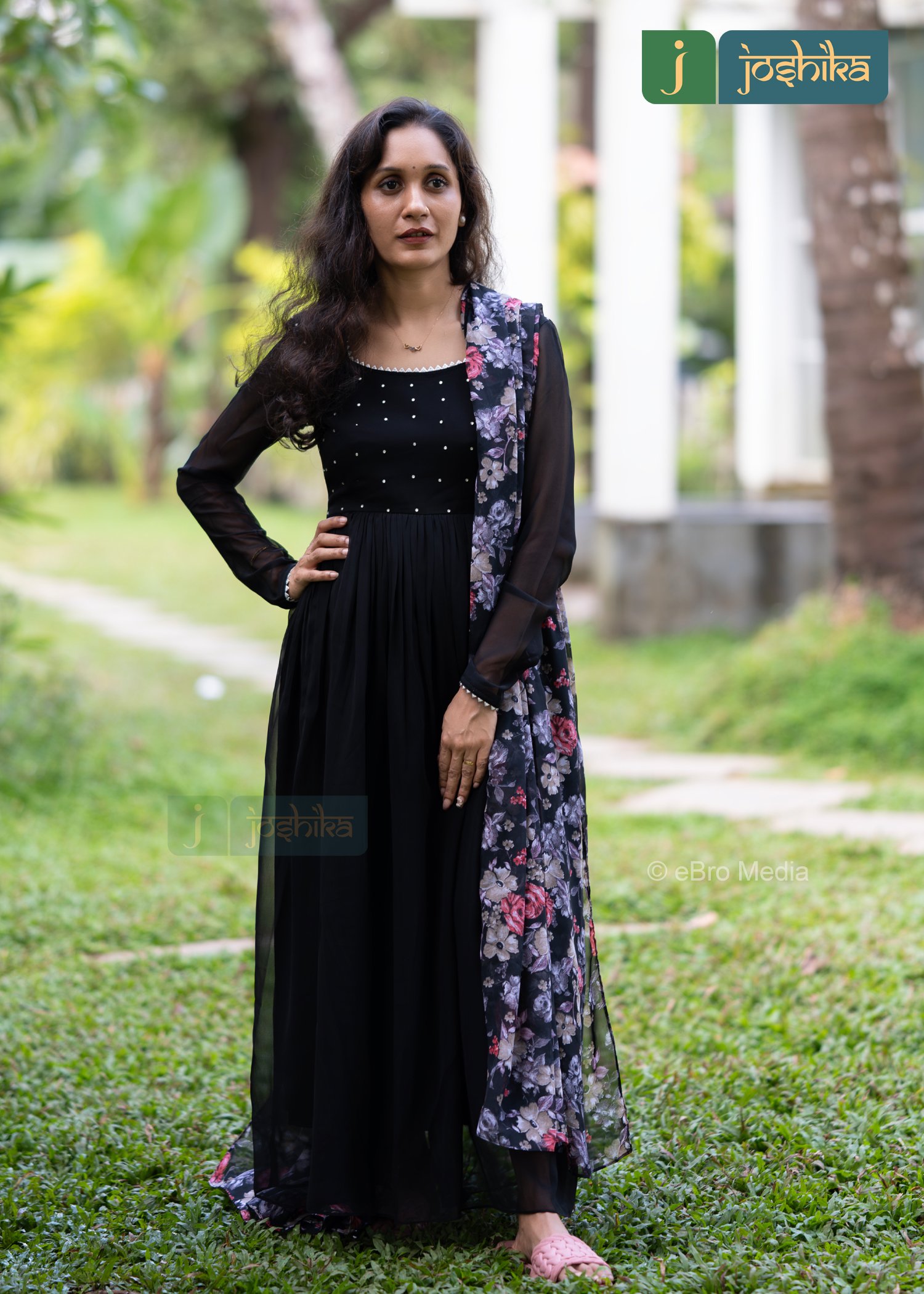 Elevate your ethnic wardrobe with this stunning pleated georgette kurta with printed georgette kurta ,Neck and sleeves are embellished with silver color lace.