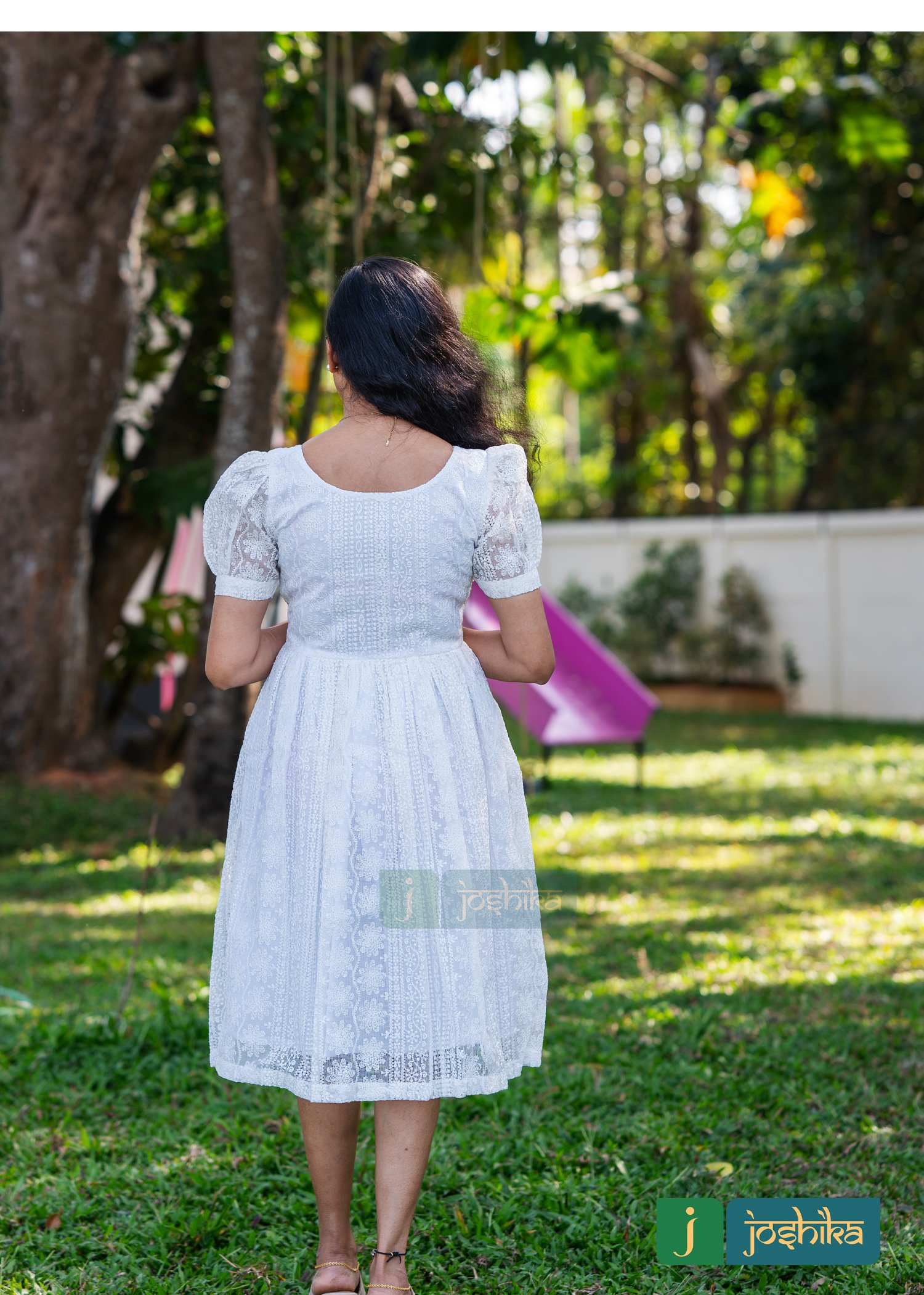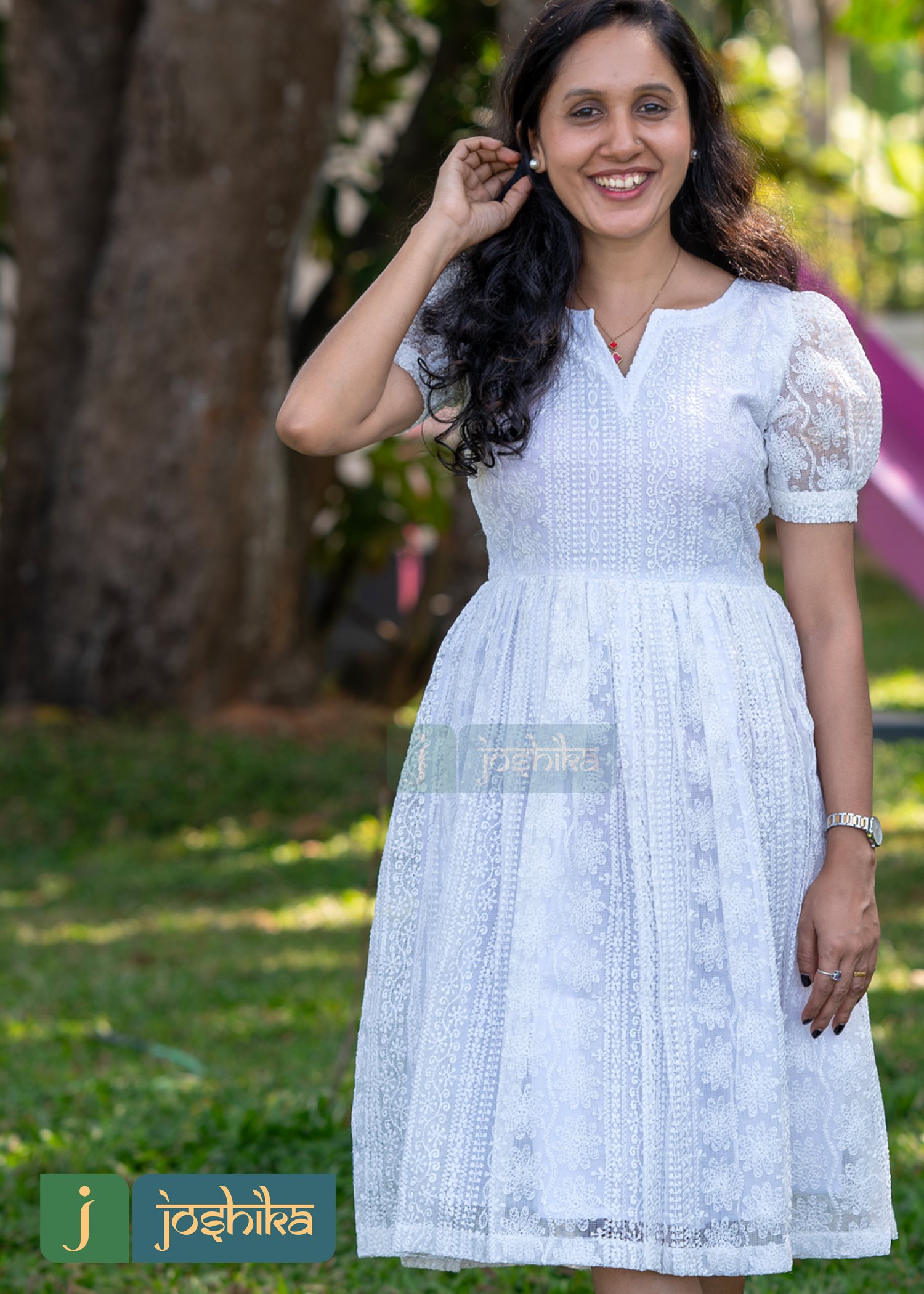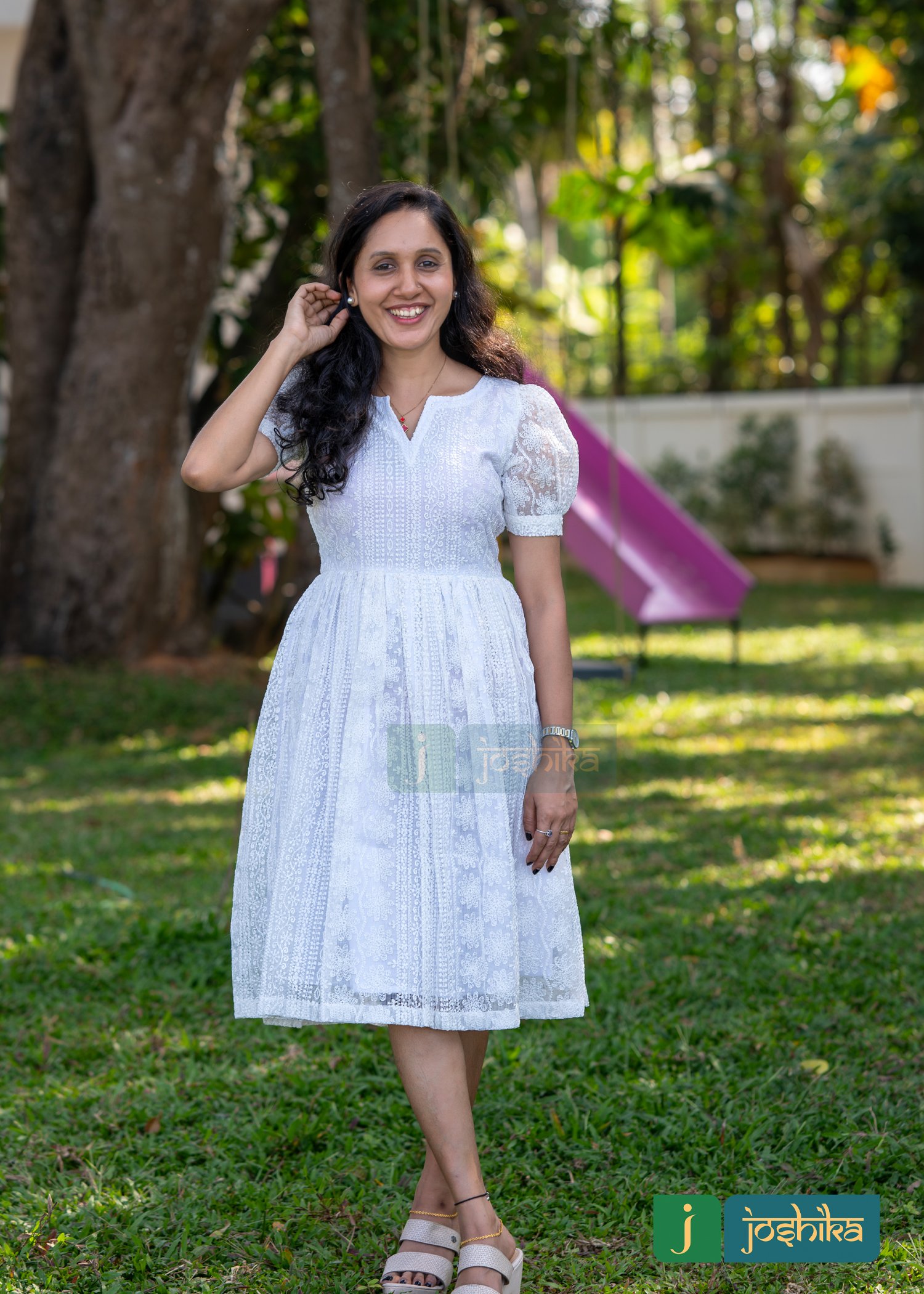 Premium net Kotta frock for women, Gathered, puff sleeves , V neck design.