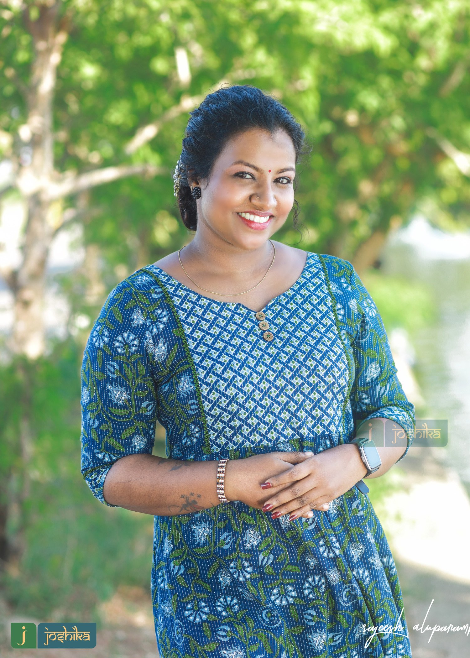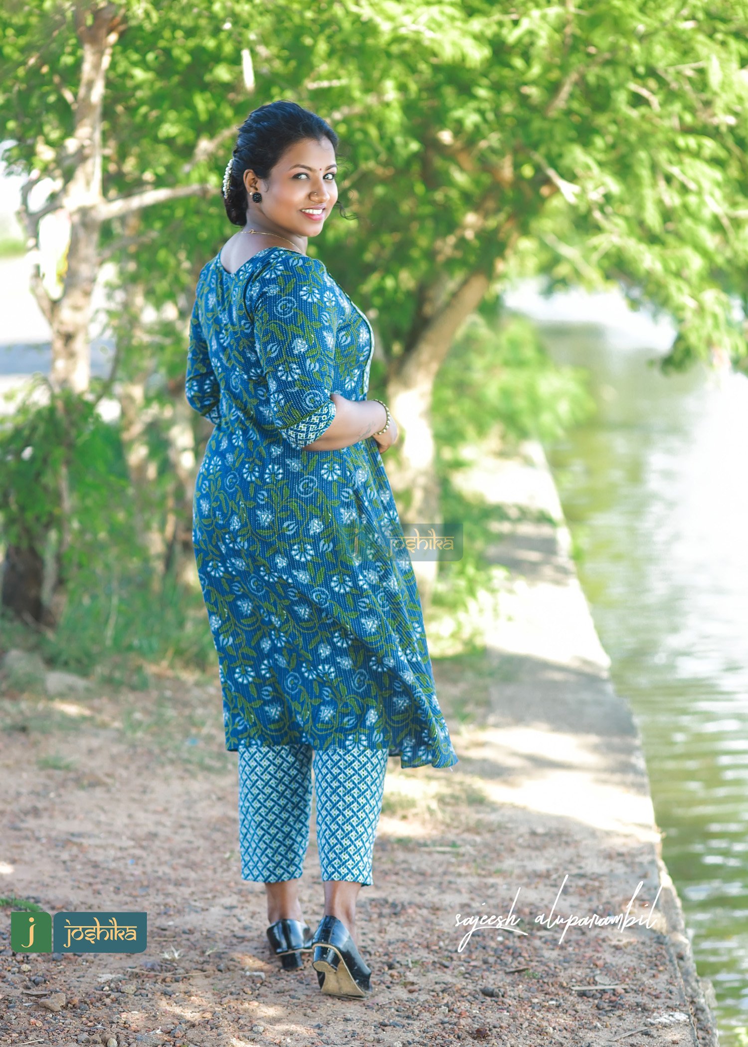 Printed cotton kurta set ,yoke embellished with bottom material ,attached green color lace.