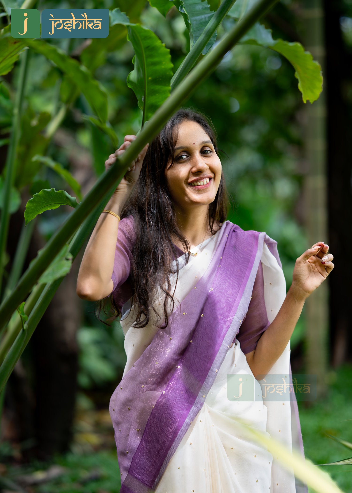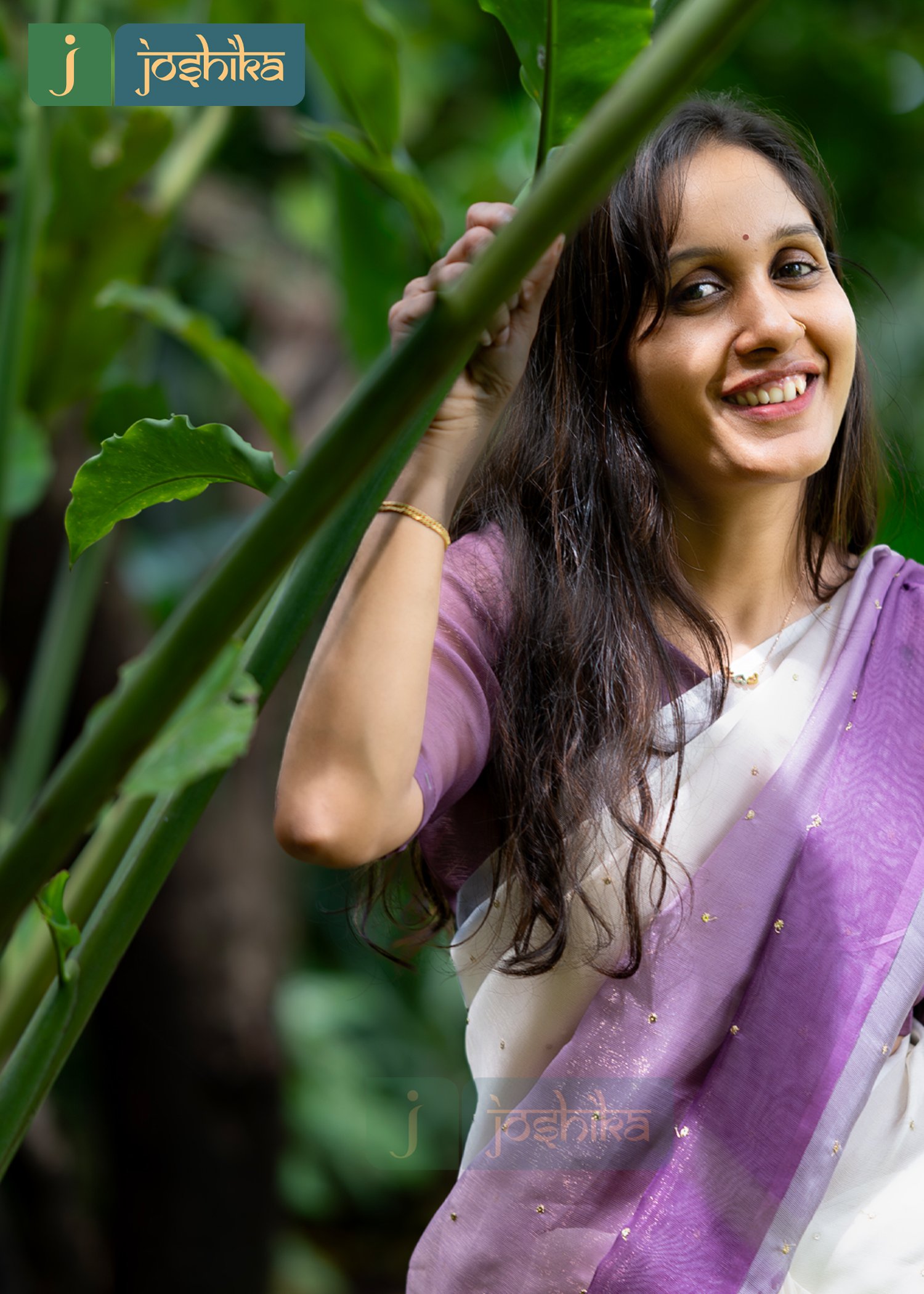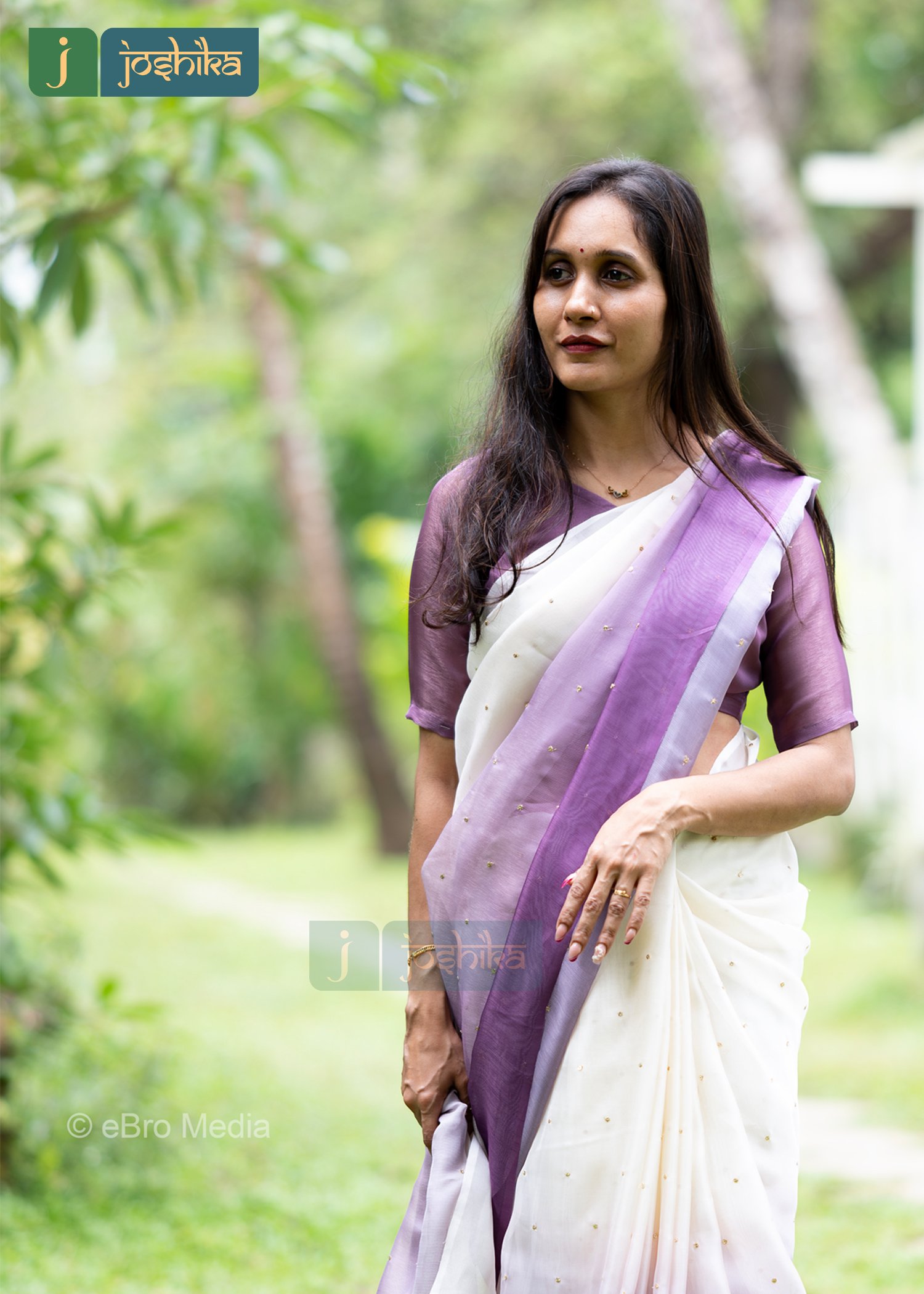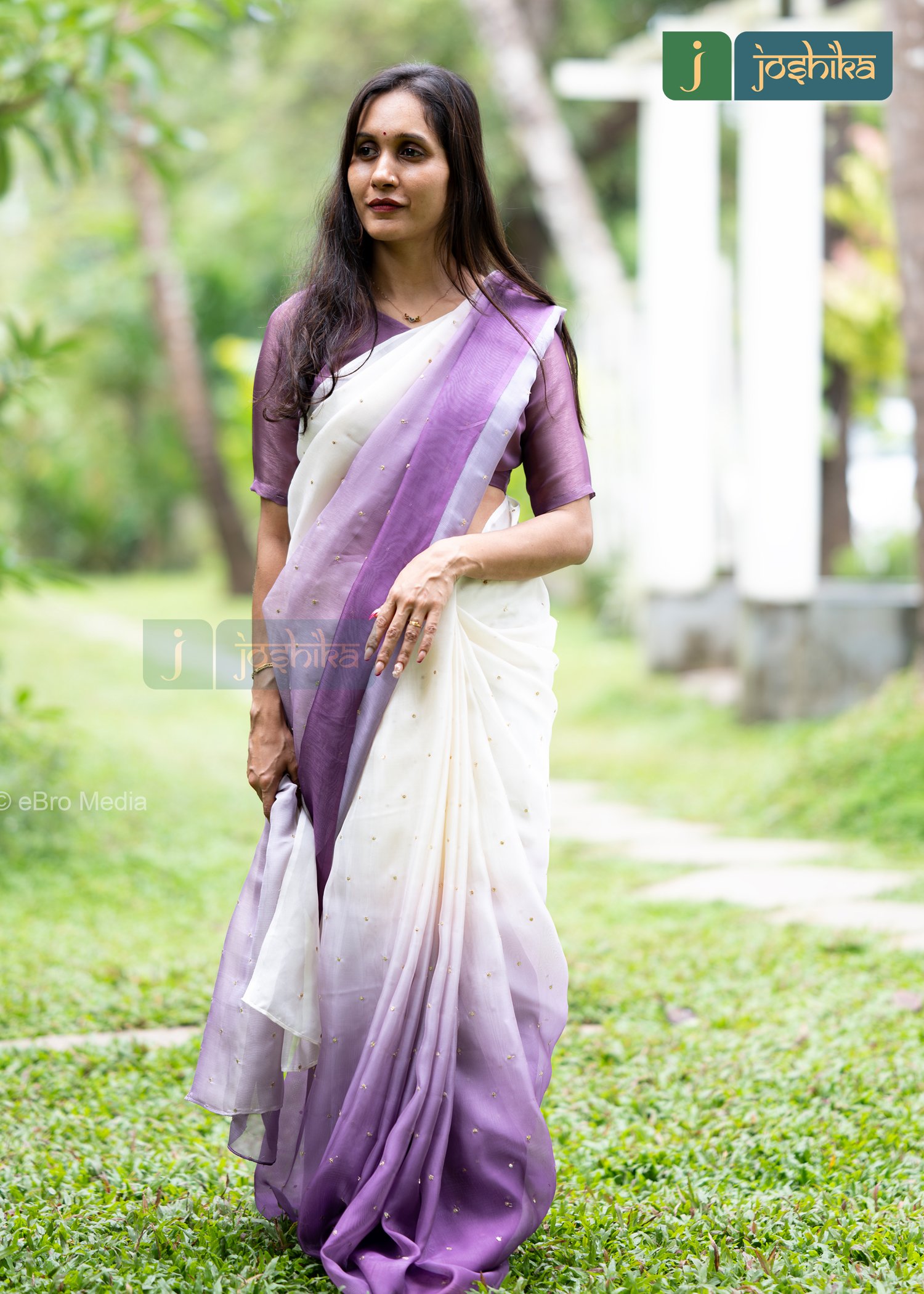 Cream and lavender ombre saree with subtle gold self sequenced embroidery across the fabric.double shaded jute organza fabric.