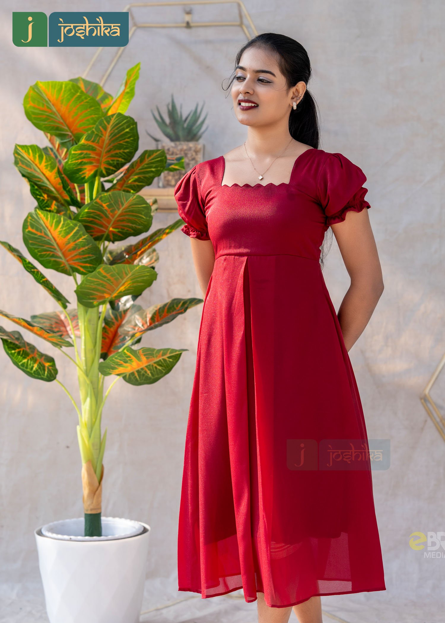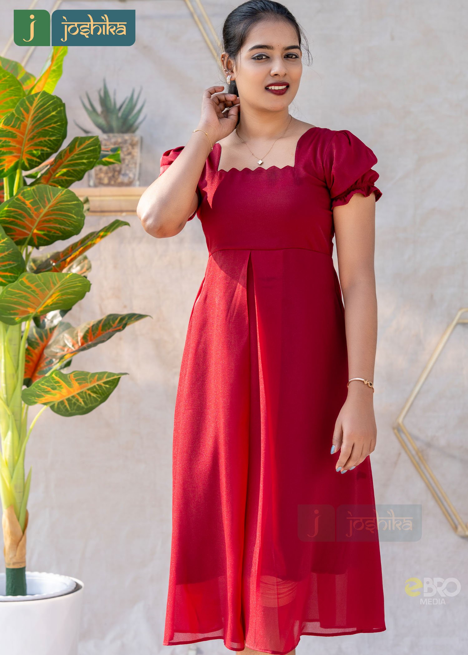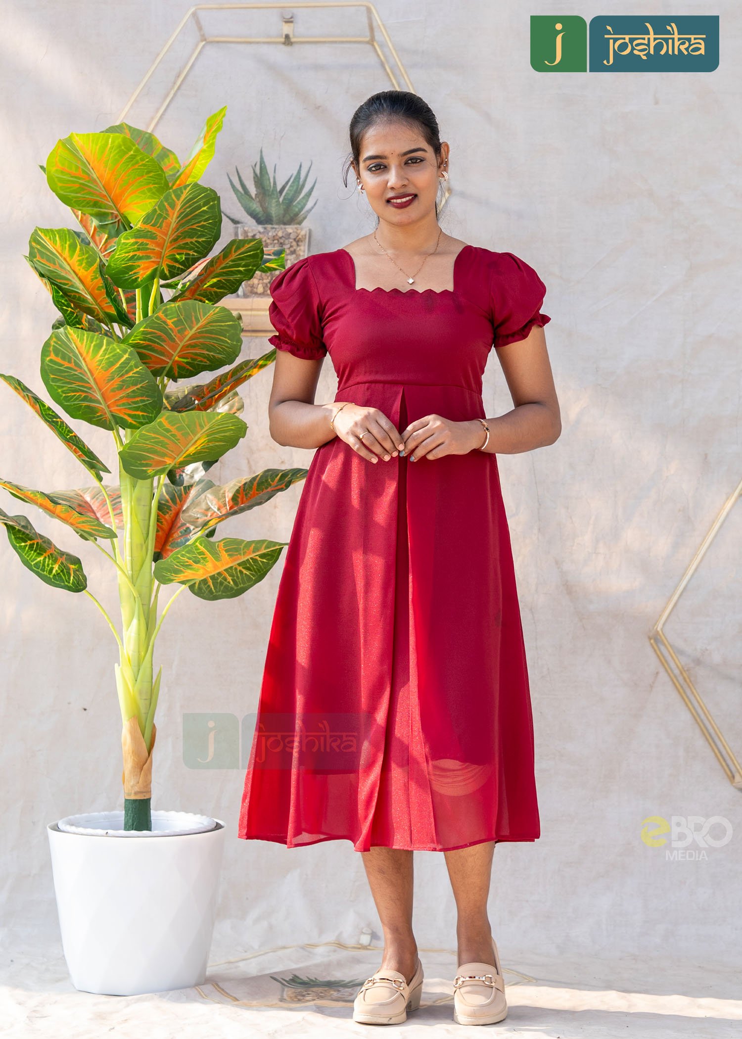 The stylish neckline and soft puff sleeves add a feminine charm, while the smooth, lightweight fabric provides a flattering drape perfect for day-to-evening wear. The subtle sheen of the silky georgette enhances the overall look, making it ideal for casual outings, festive gatherings, or special occasions.