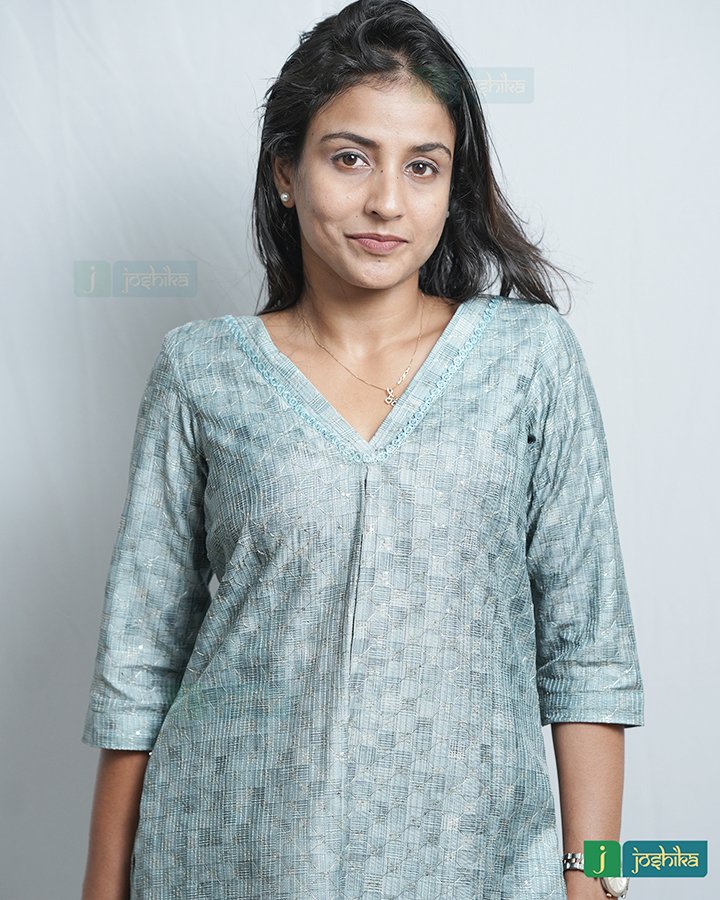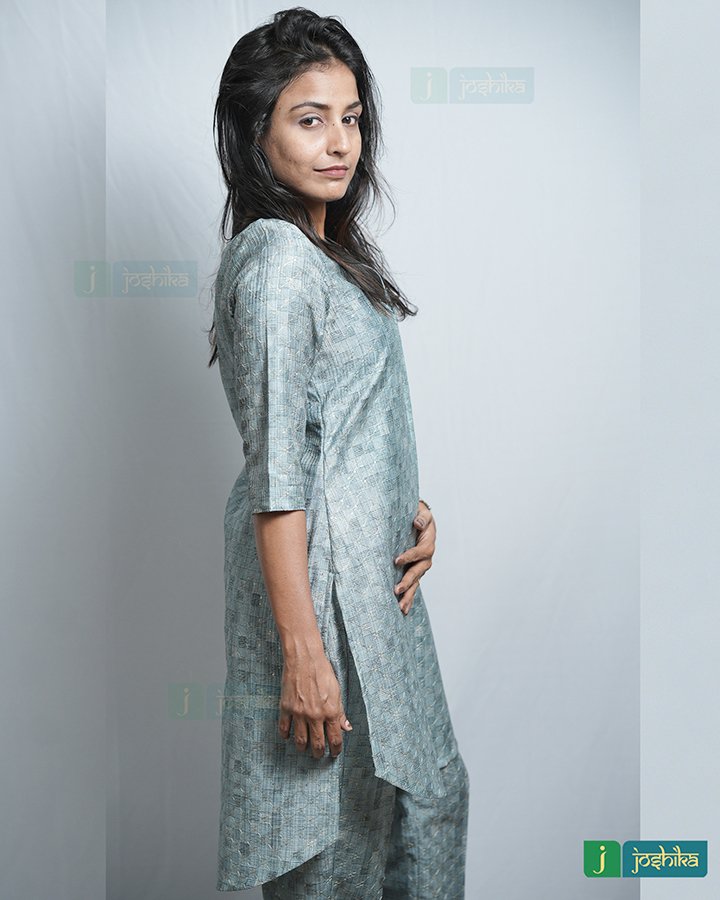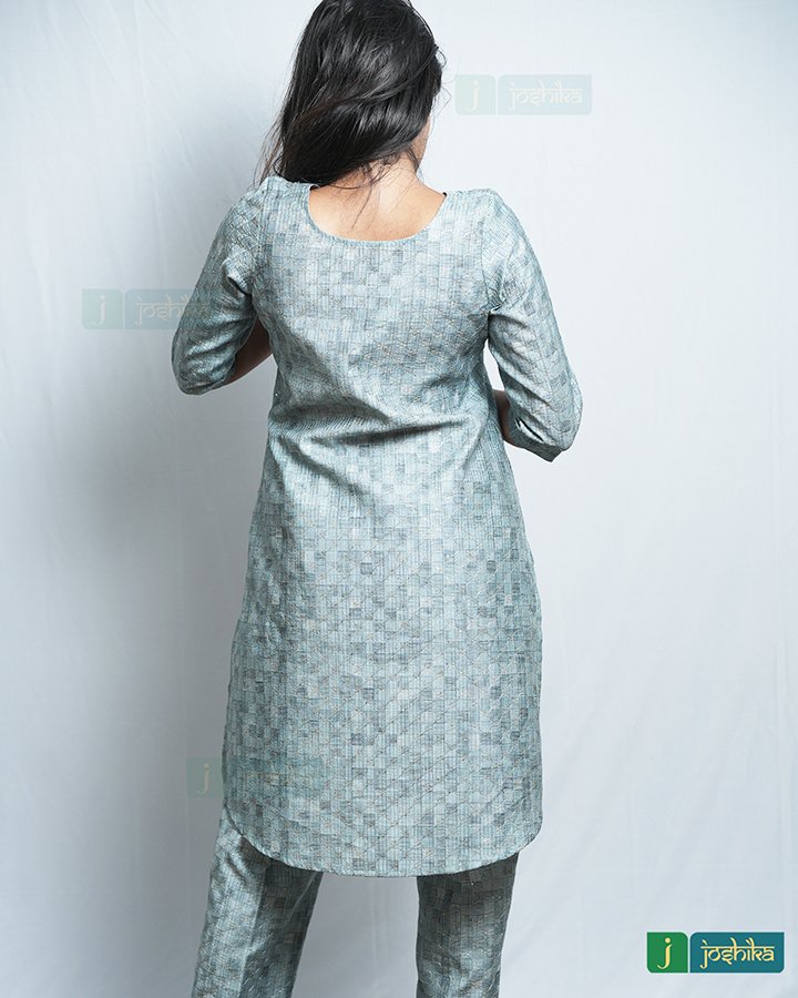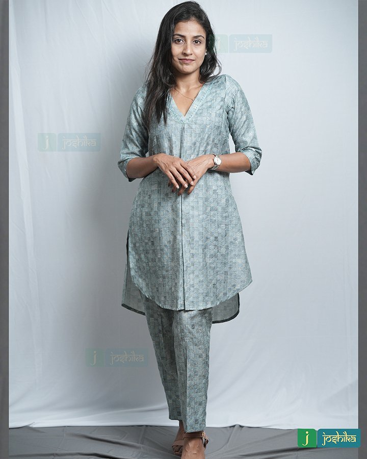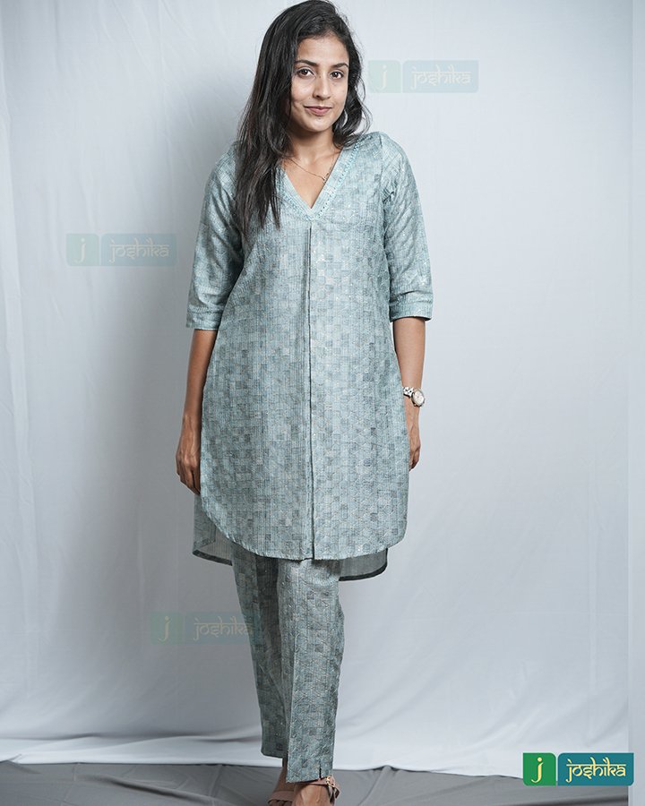 Silky self-embroidered co ord set With attached same color lace in neck .