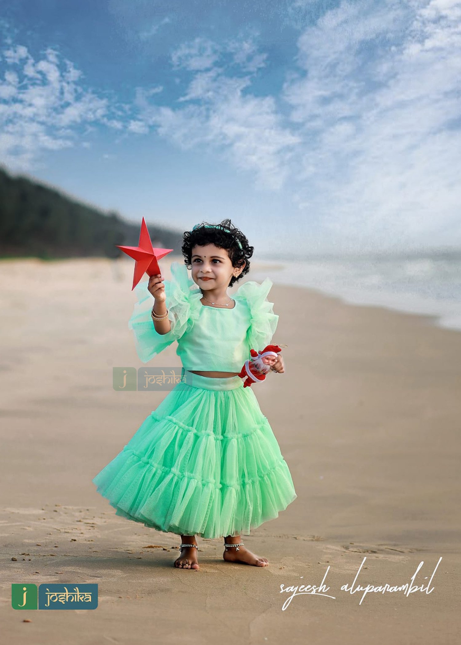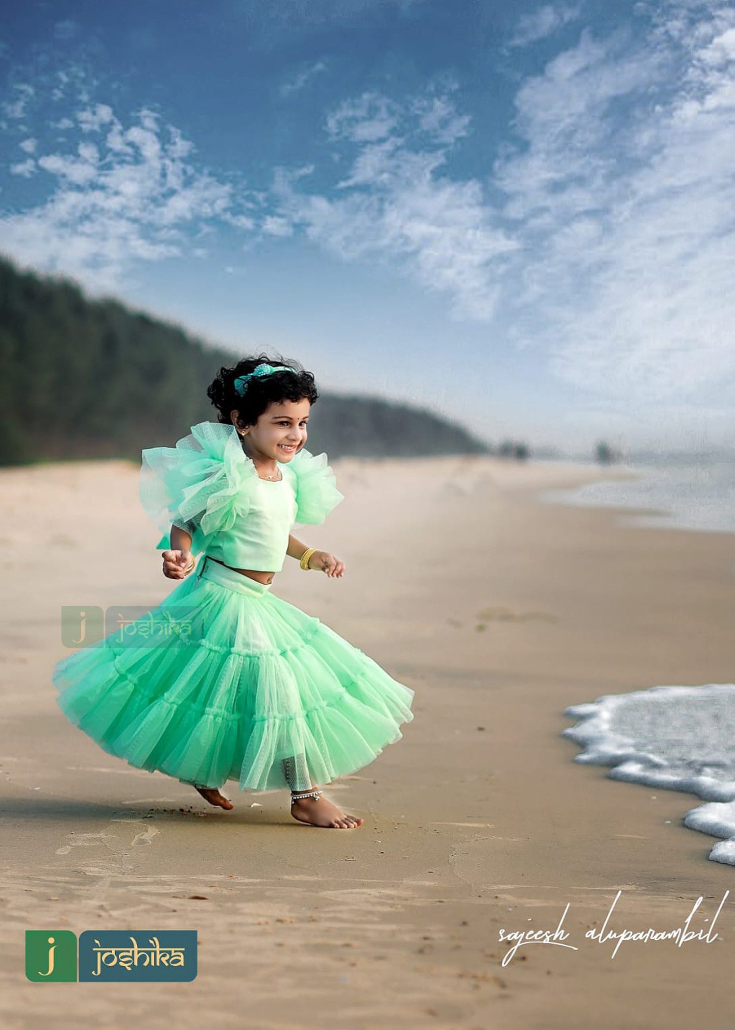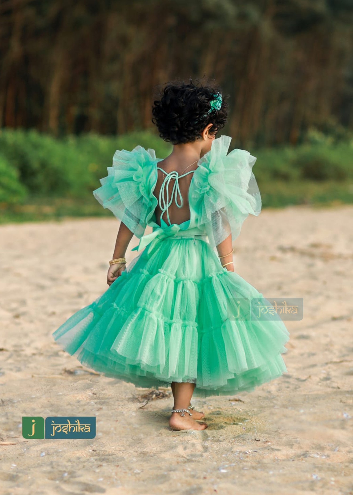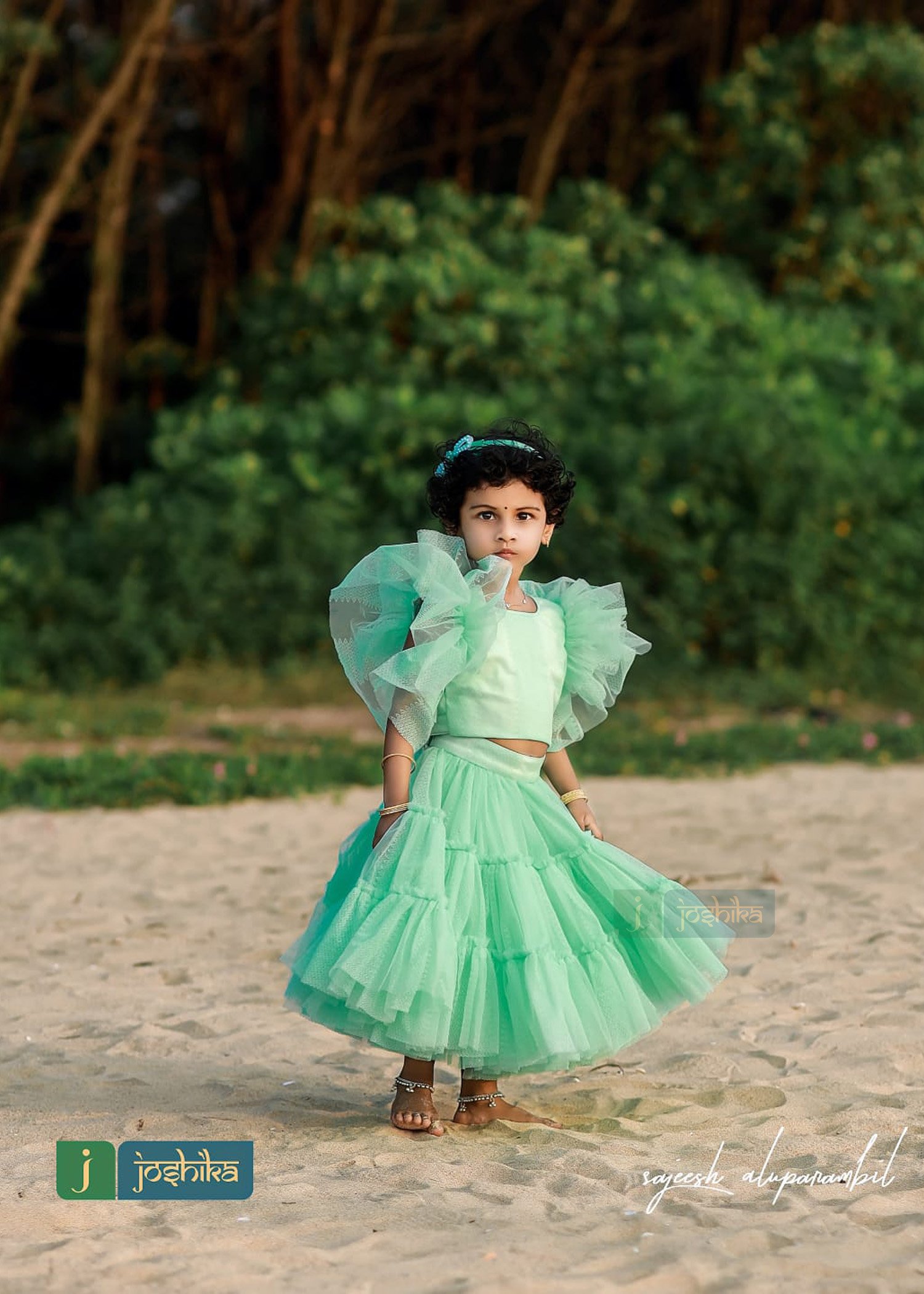 Skirt and crop top for kids, flared sleeves crop top and gathered layer skirt.