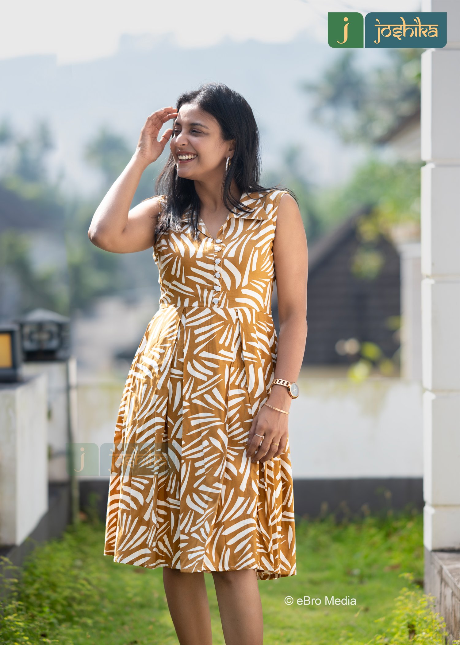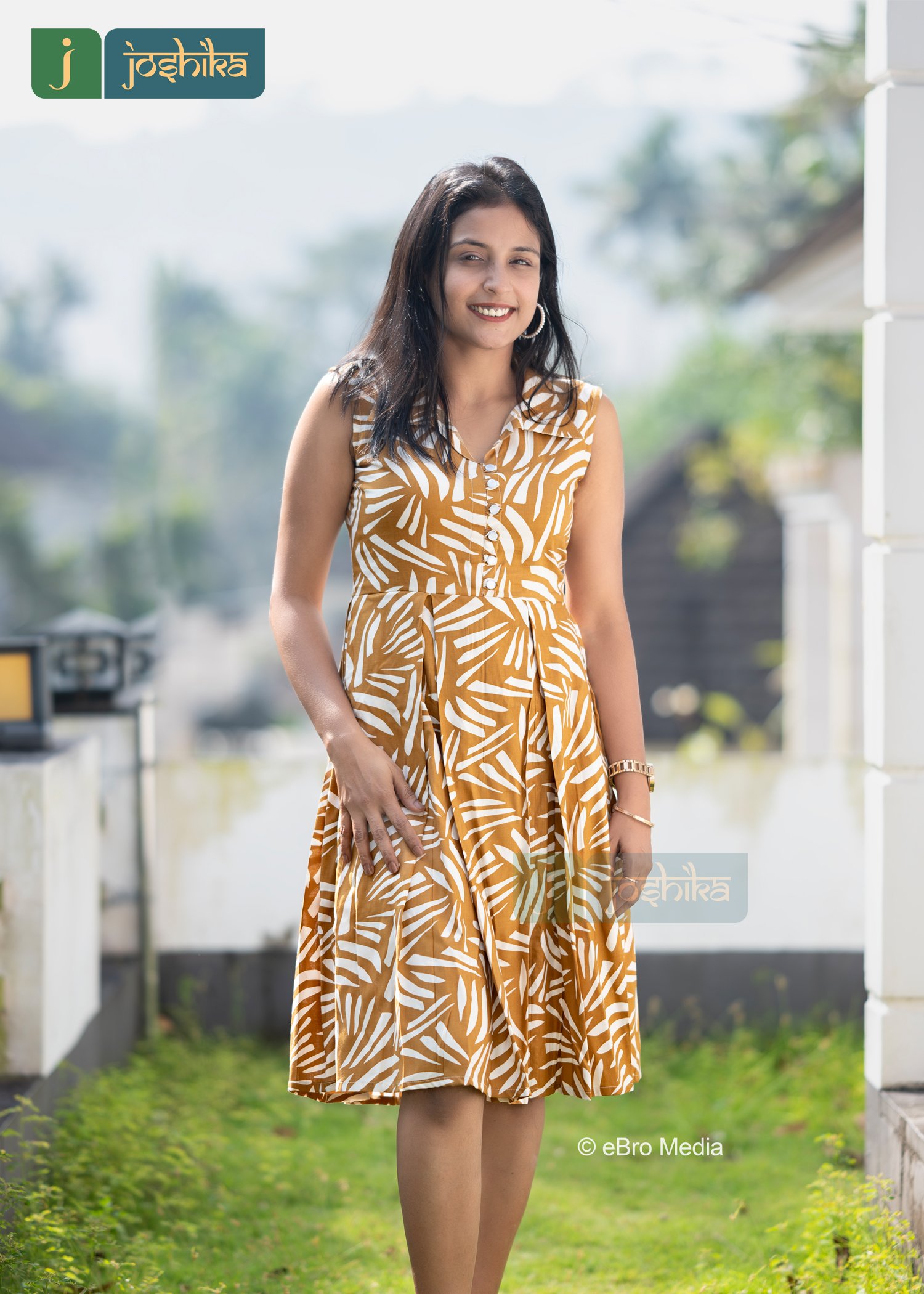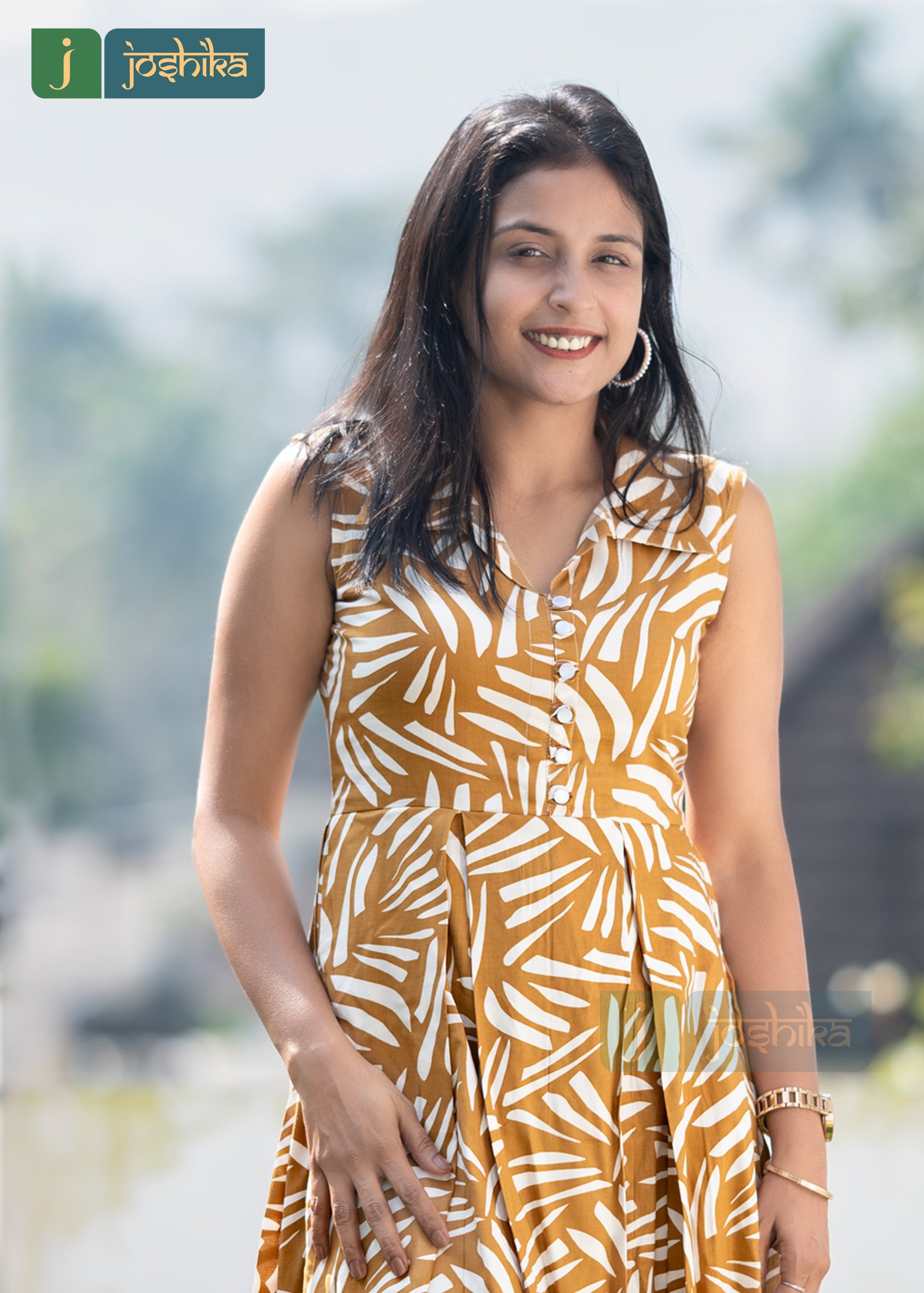 Upgrade your wardrobe with this premium cotton frock crafted for comfort and style, Featuring a trendy abstract all over print, sleeveless and box pleated design, and flowy silhouette with collar design, this dress is perfect for casual outings, office wear, and summer days.