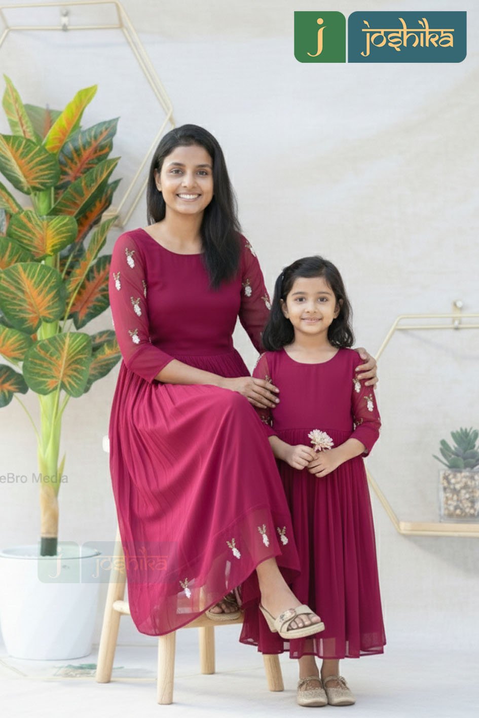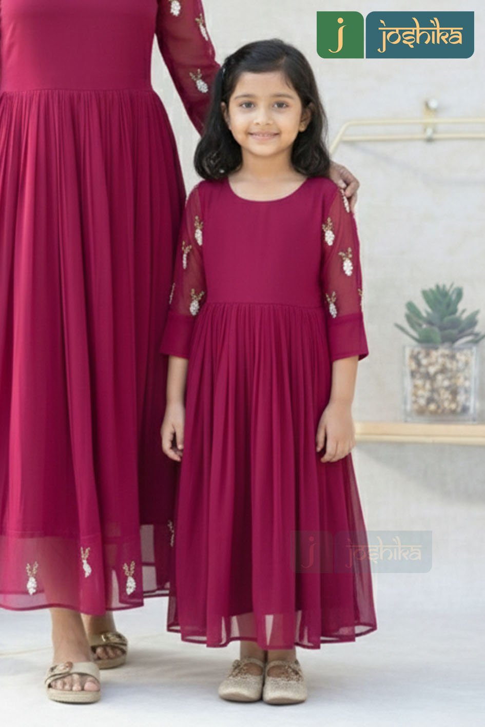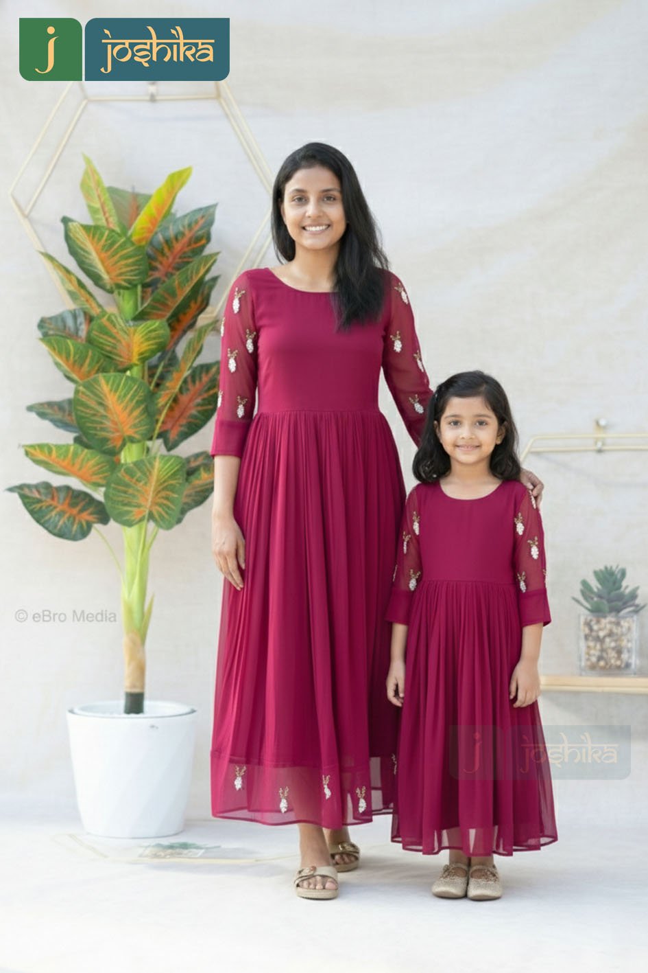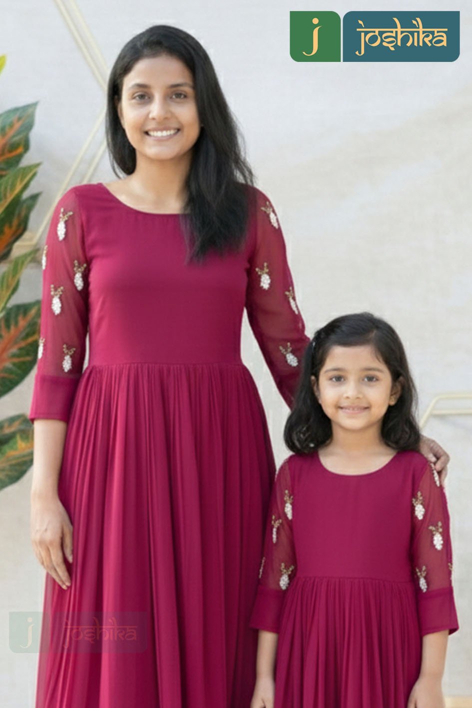 Make every occasion extra special with this stunning Mother & Daughter matching dress set in vibrant Rani Pink. Crafted from lightweight Georgette fabric, these dresses offer a soft, flowy silhouette that drapes beautifully and ensures all-day comfort.